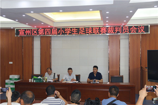 为深入贯彻国家大力发展青少年校园足球的决策部署,推进我区校园足球发展,提高我区青少年足球竞技水平。宣州区教体局决定于2018年5——7月举办第四届校园足球联赛。5月18日上午在四小民生校区召开裁判会议, 5月18日至5月20日分别在市四小民生校区、市八小、溪口中心小学、狸桥中心小学四个赛区举行小组循环赛。共有18个男子代表队、11个女子代表队近500名运动员参加了此次比赛,赛场上健儿们你追我赶、团结协作、顽强拼搏,表现出了很高的技战术水平和素养。