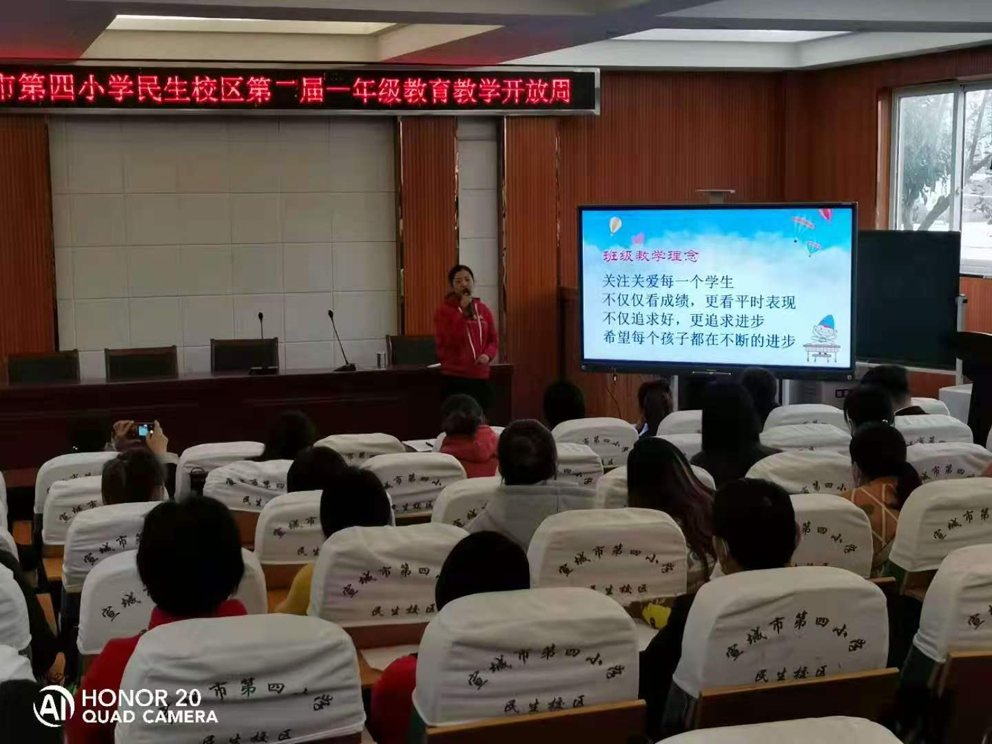四小教导副主任董邦叶主持的教育讲座《家校合力,共促成长》从校区的师资队伍、办学规模、办学理念、办学特色、一日常规、家校沟通等方面和家长近距离的进行了交流与分享,报告厅内座无虚席,掌声如雷;袁丽丽、孔海云、徐渝艳、舒以钱、刘飞、林德芳、朱吴美等老师展示了精彩纷呈的课堂教学;李云鹏、李梅、李琴、赵雪、宛娟等五位班主任就习惯养成、安全教育、班级学生学习现状、班级管理等方面跟与会家长进行了充分的交流与沟通。开放周活动结束后,各班家长们还满怀热情地为校区的建设和发展积极献言献策。