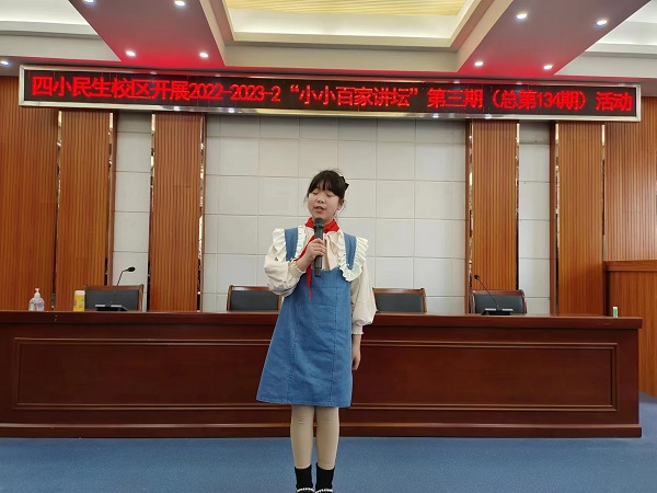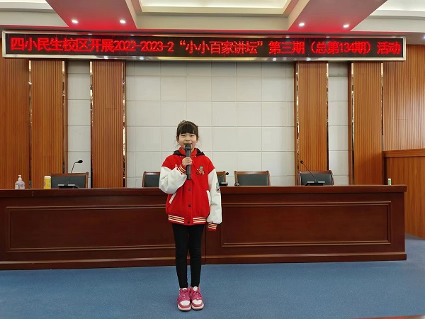 3月24日上午,民生校区“小小百家讲坛”活动迎来了第三期活动。本期由四(1)、四(2)两个班组织开展,六位小选手们带来了精彩的故事,每个小选手都精神饱满,出色发挥,最终,四(2)班李羽墨同学带来的《被人相信是一种幸福》获得本次比赛冠军。