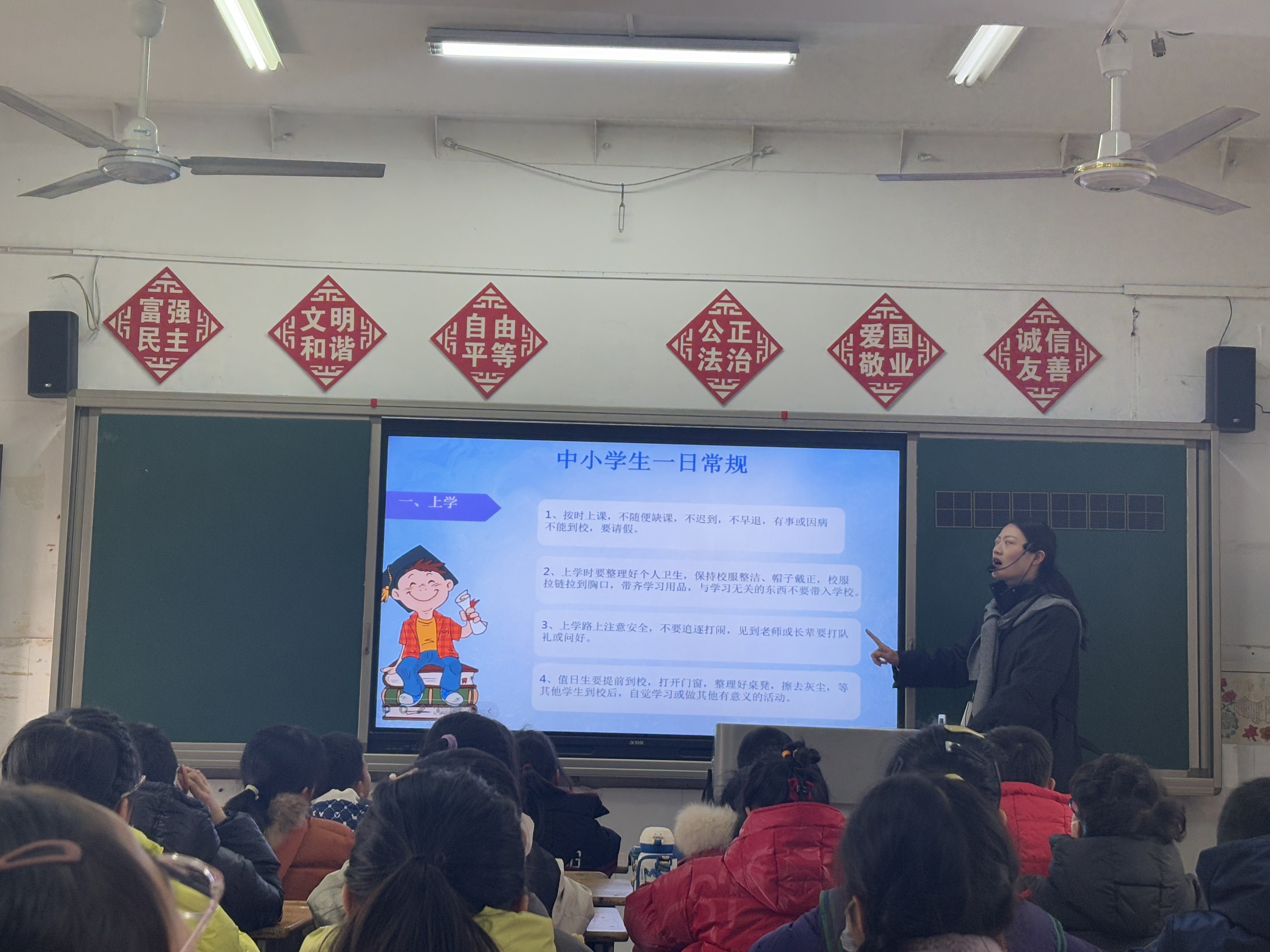 随后,各班级开展了别开生面的开学第一课主题班会。班主任老师们结合本班实际情况,设计了形式多样的班会内容。有的班级通过分享假期里的新鲜事和收获,引导学生们珍惜时光、努力学习;有的班级则通过组织安全知识竞赛、学习中小学一日常规等活动,加强了学生们的安全意识和行为习惯的养成。这些班会活动不仅让学生们对新学期充满了期待和憧憬,也为他们今后的学习和生活指明了方向。
