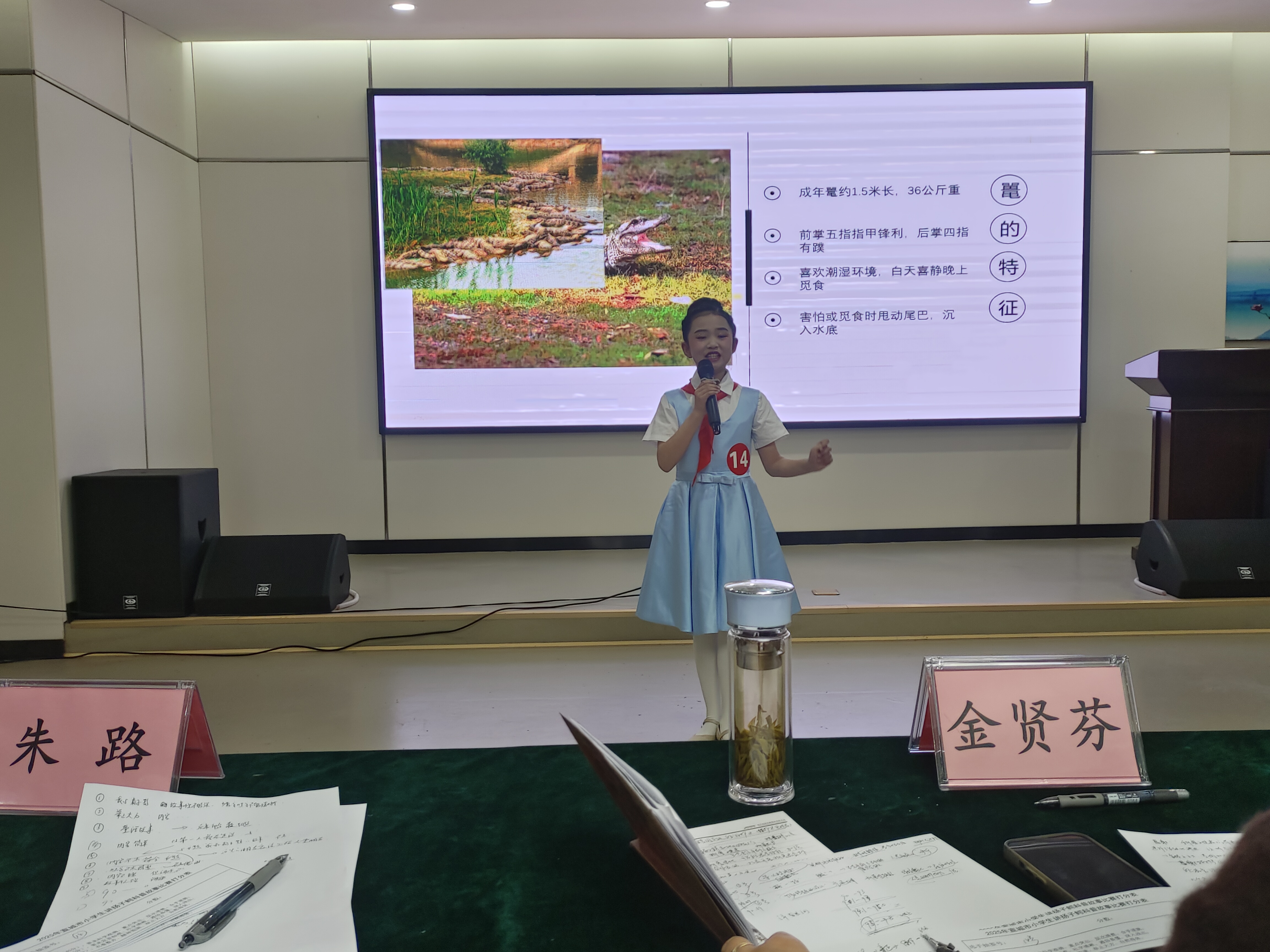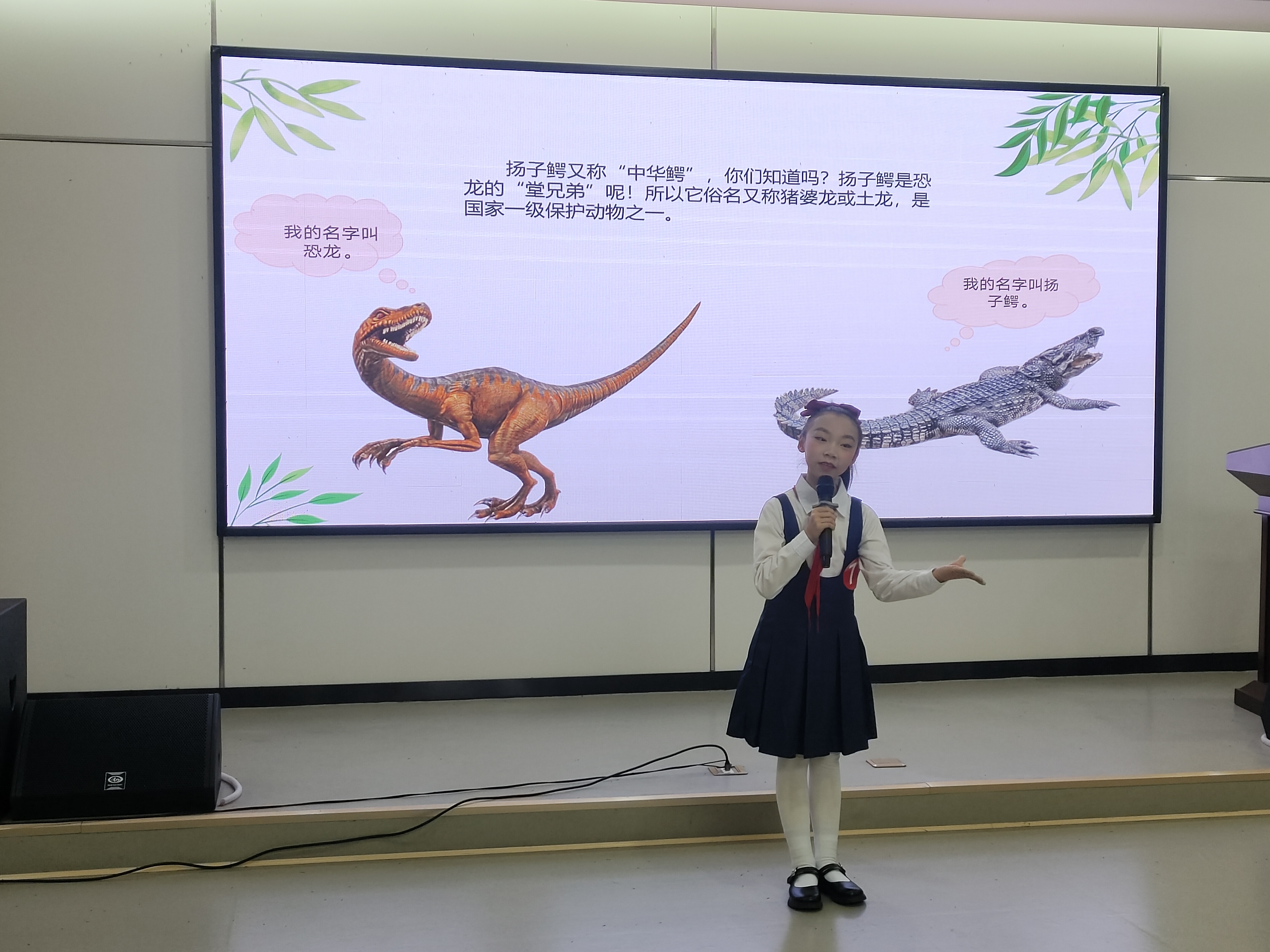 3月16日下午,宣城市小学生讲扬子鳄科普故事比赛在中国鳄鱼湖景区宣教馆举行,我校5名参赛选手,用富有感染力的语言和惟妙惟肖的表演,将扬子鳄的神秘世界呈现在观众和评委面前,赢得了阵阵掌声,经过激烈角逐,现场评分,最终汪雅蓝同学获得一等奖第一名,李慕豪、段思言获得二等奖,李羽墨、任安妮获得三等奖。