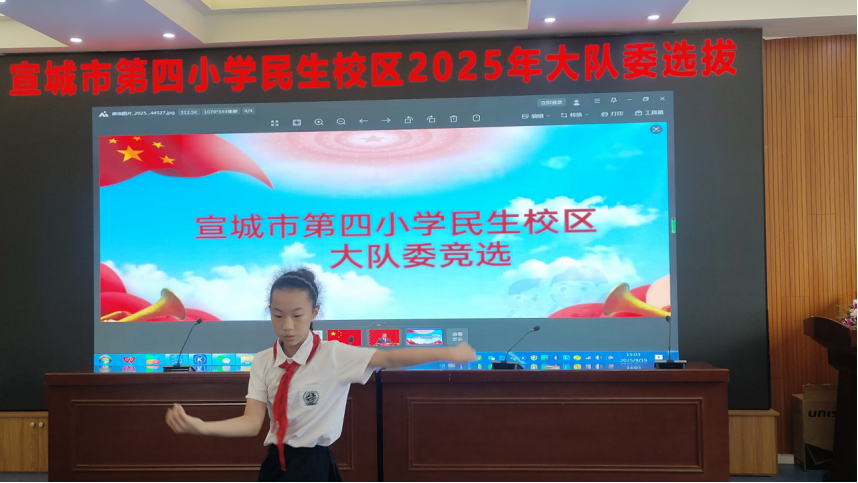 金秋九月,丹桂飘香,正是少年展志时。9 月19日下午,四小民生校区新一届大队委竞选活动隆重举行。来自三-五年级的优秀少先队员代表们齐聚一堂,以自信的姿态、饱满的热情角逐大队委岗位,用实际行动诠释新时代少先队员的责任与担当。