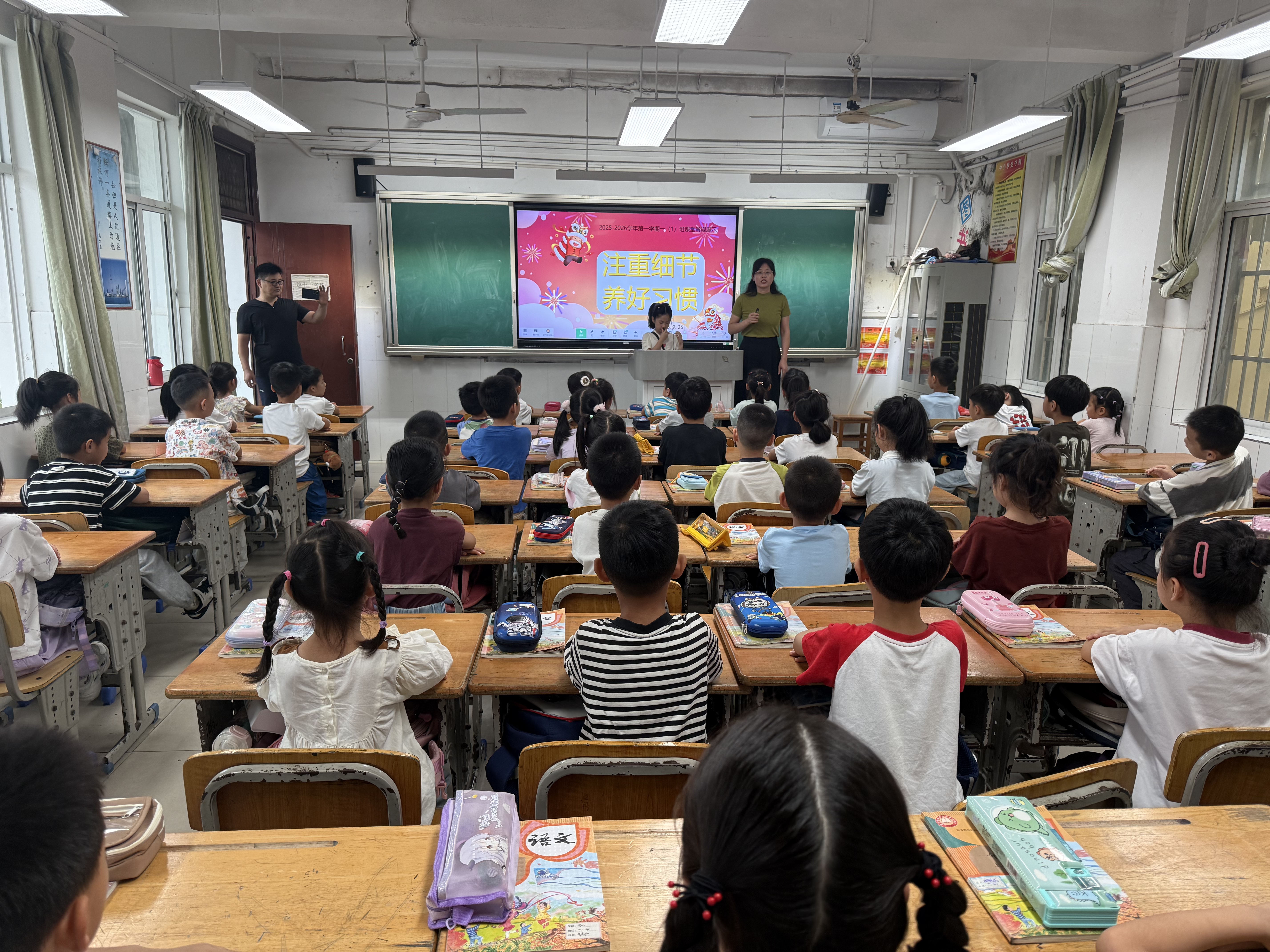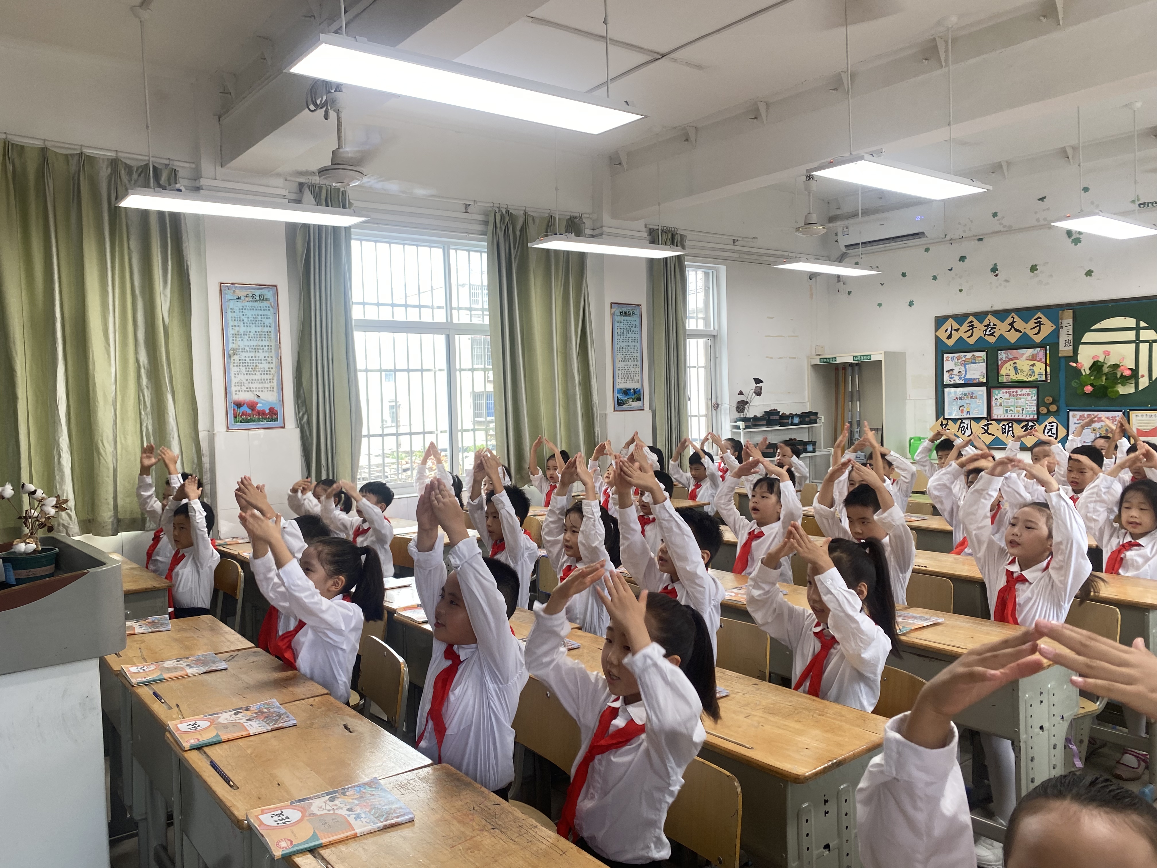 本次评比围绕六大核心维度展开,每一项都紧扣日常学习细节,尽显“小常规”里的“大素养”。在精神面貌考评中,孩子们身着熨帖整齐的校服,腰背挺直如小树苗,眼神专注地望向讲台,举手投足间满是昂扬的朝气;课前准备环节,铃声未落,课本已按科目顺序叠放桌角,文具整齐收进笔袋,桌椅对齐成线,短短几十秒便展现出极强的自理能力;师生问好时刻,“老师,您好!”“同学们,请坐!”的问候声清脆响亮,搭配标准的鞠躬礼,让礼仪的温度在课堂开篇悄然流淌;课堂展示中,学生们严格遵守“举手发言、不随意打断”的规则,小组讨论时轻声交流、有序分工,将课堂纪律化为自然的行为自觉;出操整队环节,各班在口令下迅速集结,队伍横平竖直,广播体操动作舒展有力、整齐划一,尽显团结向上的班级风貌;特色加分项更是成为评比的“高光时刻”,不少班级带来创意展示——有的伴着轻快节奏做起课桌操,小手轻拍桌面、身体跟着律动,既放松身心又展现默契;有的开展“课前古诗诵读”,朗朗书声回荡教室。