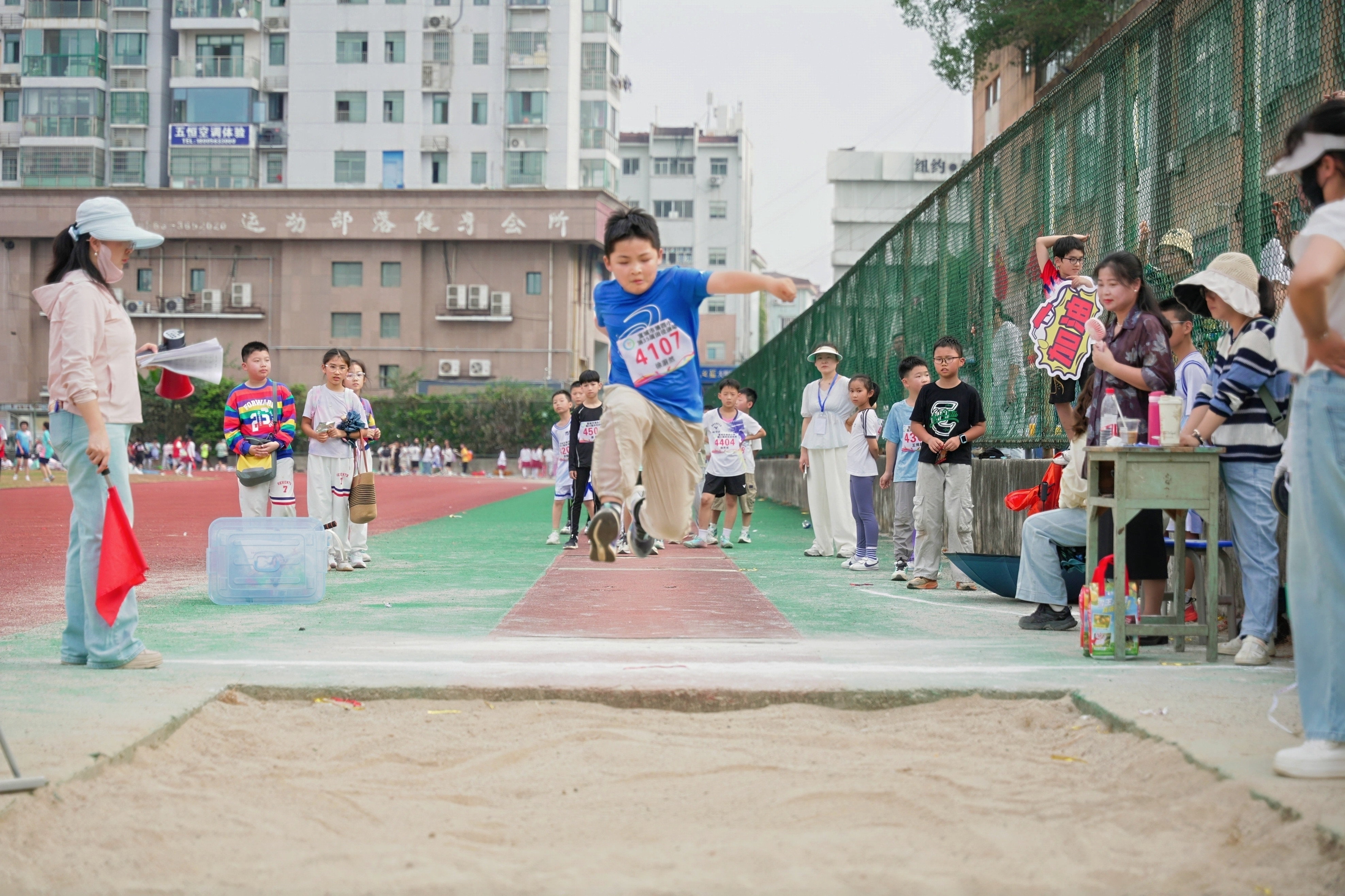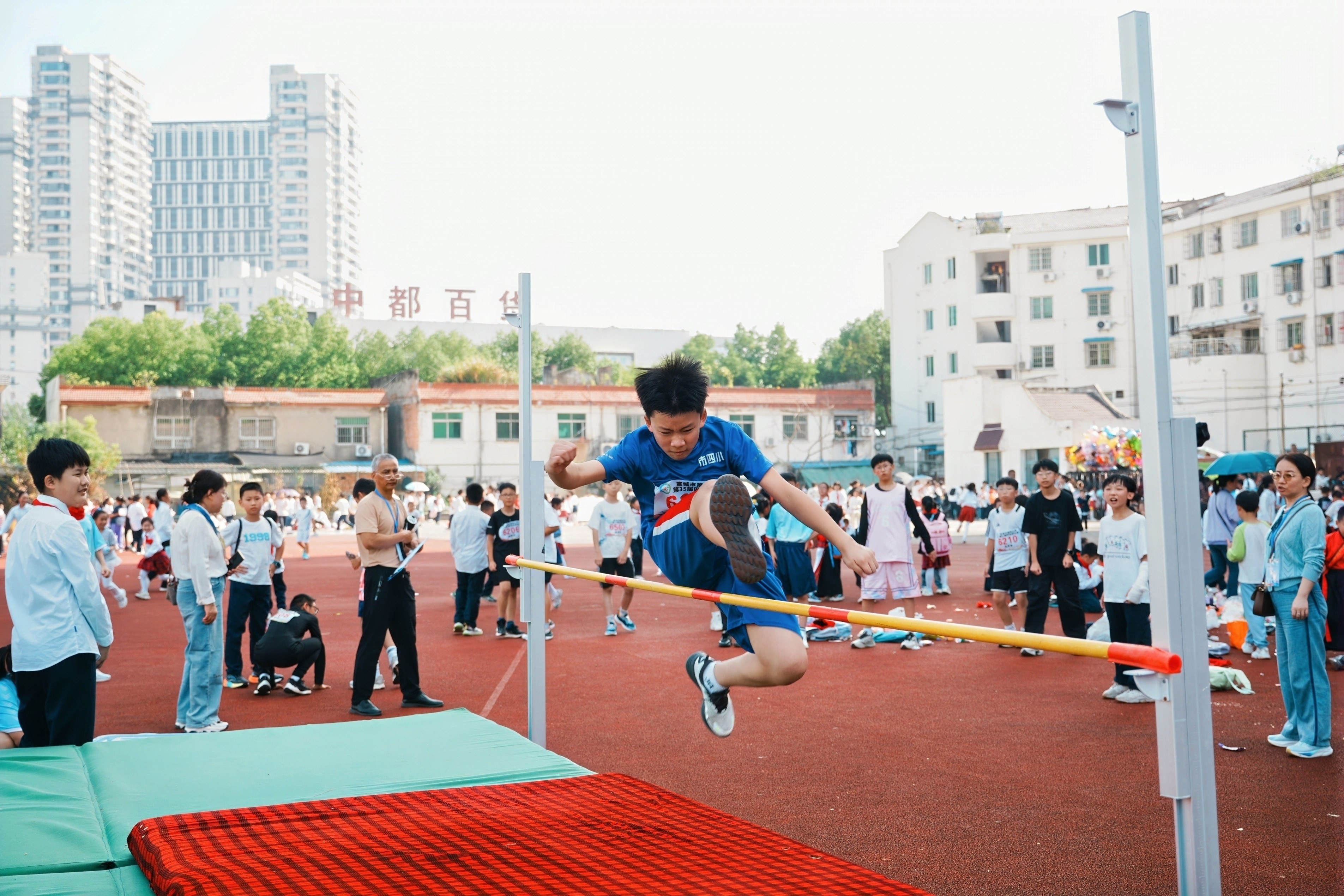 比赛正式开始后,整个运动场瞬间成为激情的海洋。短跑赛道上,发令枪一响,运动健儿们如离弦之箭般冲出起跑线,他们咬紧牙关、奋力冲刺,耳边是呼啸的风声和全场师生的呐喊助威声,每一步都凝聚着力量与坚持;长跑项目中,选手们凭借顽强的耐力与毅力,在漫长的赛道上不断前行,即使汗水浸湿了衣衫,呼吸变得急促,也从未停下脚步,用坚持诠释着体育精神的真谛;跳远沙坑前,运动员们助跑、起跳、腾空、落地,一系列流畅的动作一气呵成,沙粒飞溅的瞬间,定格了他们追求更远目标的坚定身影;跳高赛场上,横杆一次次被升高,选手们一次次助跑起跳,用勇气挑战着新的高度,每一次成功越过,都引来全场欢呼;4×100米接力赛更是将比赛气氛推向高潮,队员们默契配合、快速交接接力棒,传递的不仅是速度,更是班级的团结与凝聚力;跳绳项目中,选手们手腕灵活转动,绳子在空中划出优美的弧线,清脆的落地声与加油声交织在一起,充满了欢乐与活力。