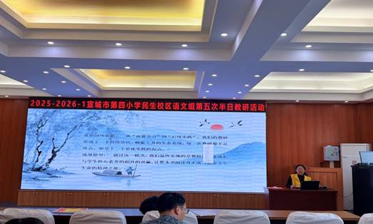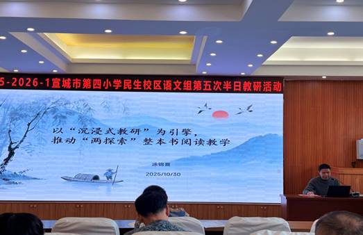 第二环节,教研组长涂锦熹老师以“以‘沉浸式教研’为引擎,推动‘两探索’整本书阅读教学”为主题,分享了民生校区在整本书阅读教学方面的具体做法与阶段性成果。