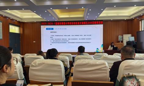 下午,校区开展了半日教研活动,共分为四个环节: 第一环节为赵玲老师的说播课——“解码神话神奇,采撷文化星火”《中国神话传说》整本书阅读导读课。赵老师围绕教材分析、学情把握、目标设定、教学思路、过程设计与课后反思六个方面展开说课,重点阐述了在教学方式改进及“教学评一体化”落实方面的探索与实践。