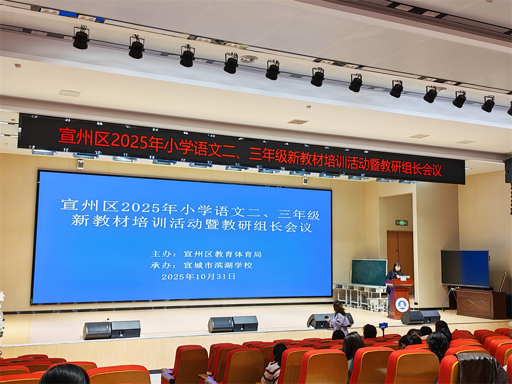 2025年10月31日下午,宣城市滨湖学校小学部报告厅内气氛热烈,全区小学语文二、三年级新教材培训暨教研组长会议在此顺利召开。会议吸引了众多教育工作者参与,包括各小学及九年一贯制学校的语文教研组长、课题组长、二三年级语文教师,以及市中心教研组成员,市四小民生校区语文组教研组长李云鹏老师和骨干教师汪显华、朱培培老师参加了培训学习。