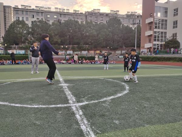 比赛中,小球员们配合默契,抢断、传球、射门有模有样。尽管年纪尚小,但大家斗志昂扬,摔倒了立刻爬起,失误了互相鼓励,每一次精彩攻防都引来全场欢呼。场边,各班家长组成的“啦啦队”格外抢眼,他们高声为孩子们呐喊助威,班主任和体育老师则在场边悉心指导,及时调整战术,全程陪伴孩子们并肩作战。