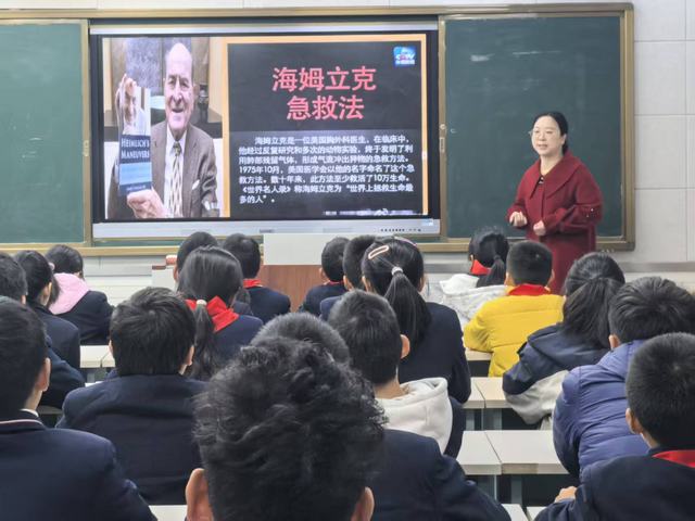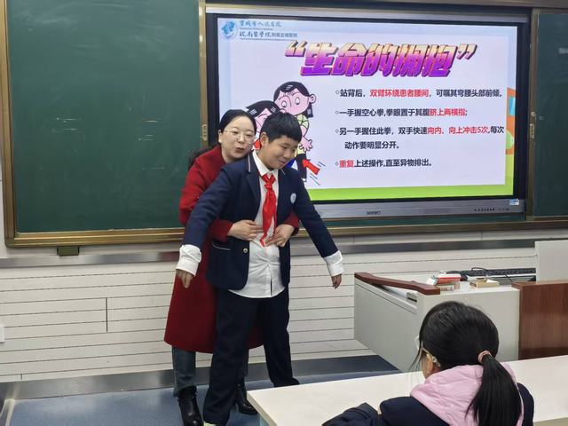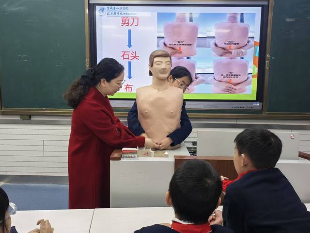 2025年11月27日上午,宣城市第四小学本部开展了第一百零一期家长讲堂——《生命的拥抱--“海姆立克急救法”》。 本次讲座由五(3)班龚梓睿同学家长,宣城市人民医院消化内科二病区副护士长汪梦凌女士主讲。 汪梦凌女士精心准备课程内容,制作了适合孩子们喜欢的PPT和视频课件、准备了进行现场指导救助的实物假人等。从了解什么是海姆立克急救法到如何急救以及生活中如何预防等,并利用实物假人,教授急救口诀“剪刀、石头、布”一一指导孩子们如何急救。整节课课堂气氛活泼,孩子们积极发言,踊跃上台演示,是一堂真正的拥抱生命的急救安全技能课。
