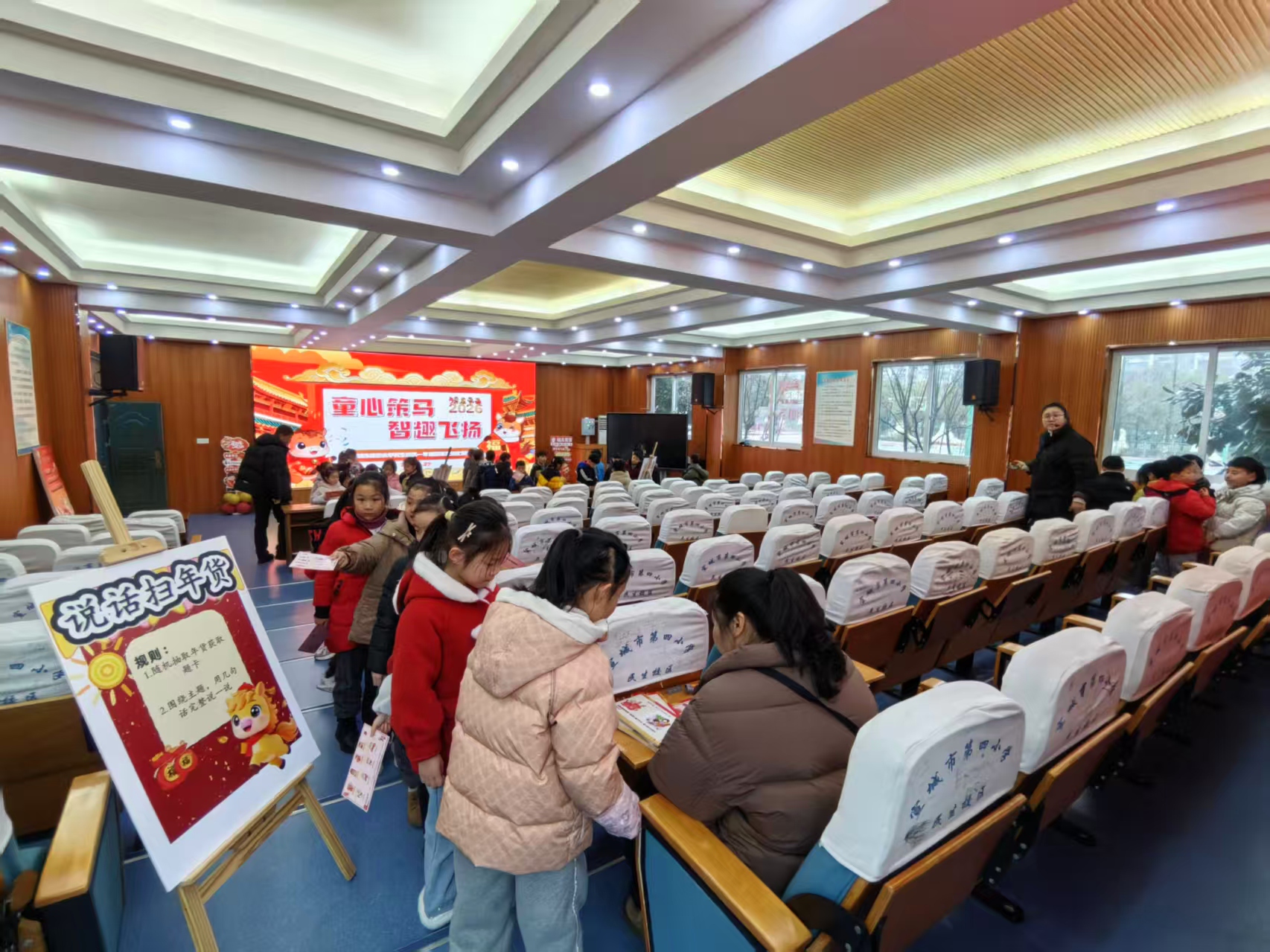 为深入贯彻国家“双减”政策,聚焦核心素养目标,切实减轻学生学业负担,2026年1月27日,宣城市第四小学民生校区组织一二年级全体学生开展了主题为“童心策马 智趣飞扬”的期末游考闯关活动。