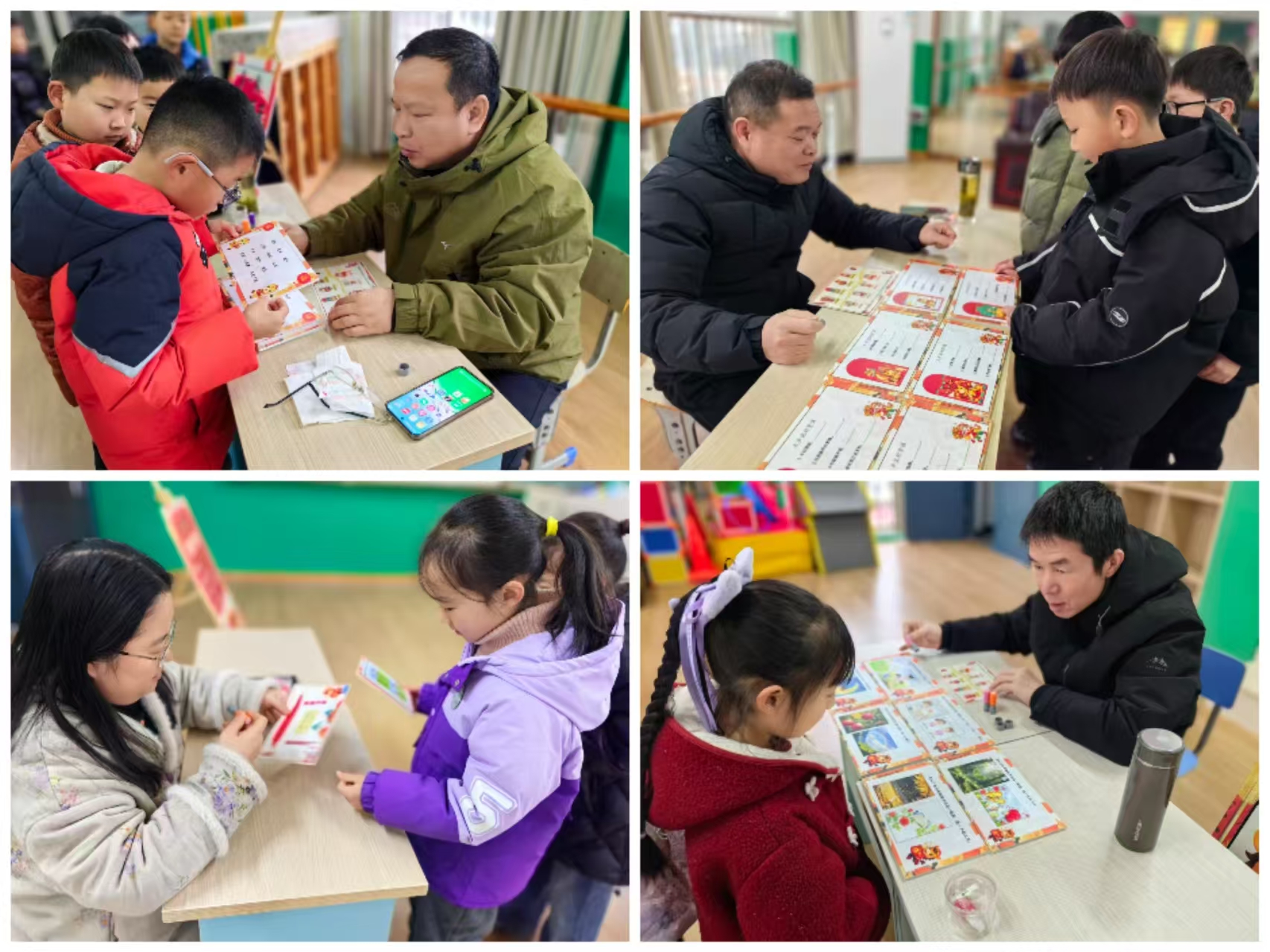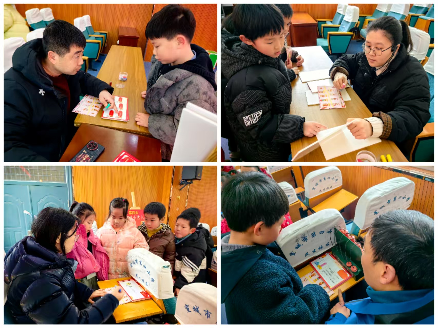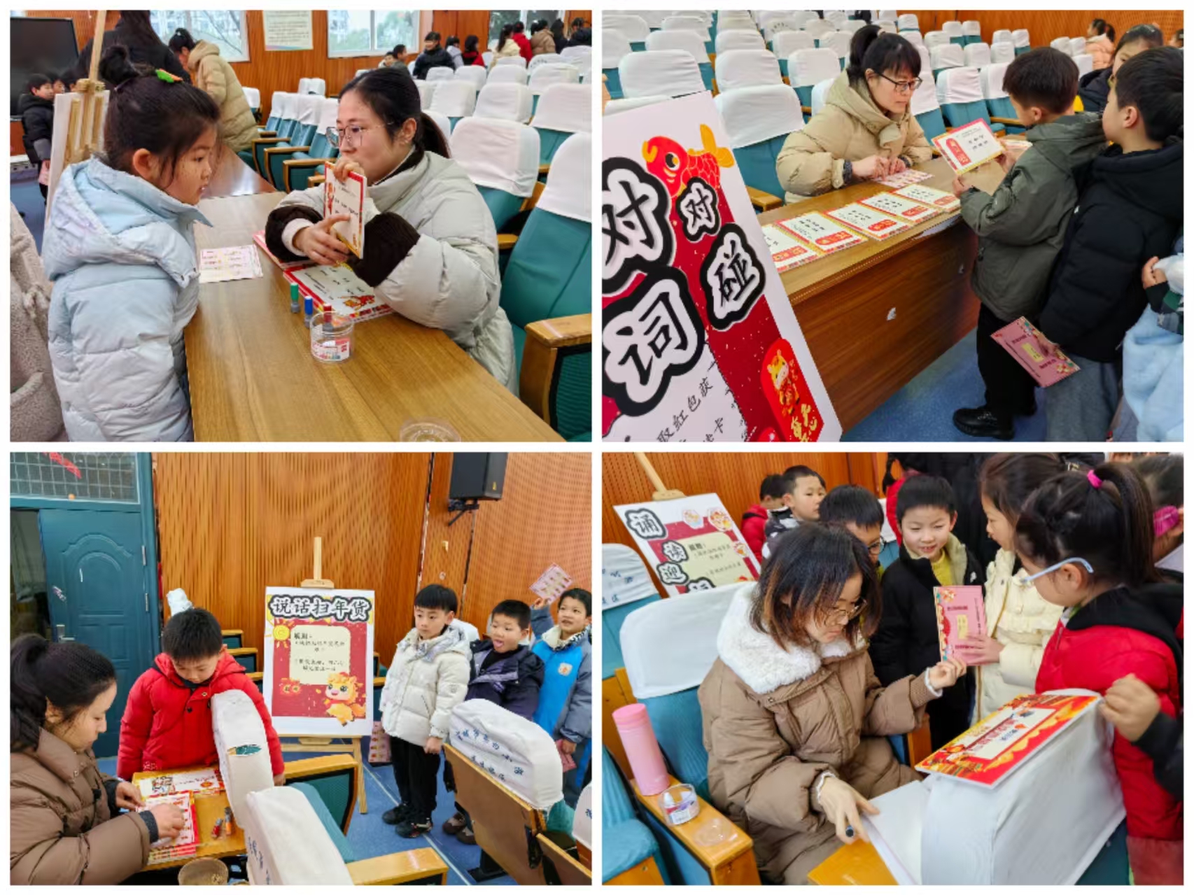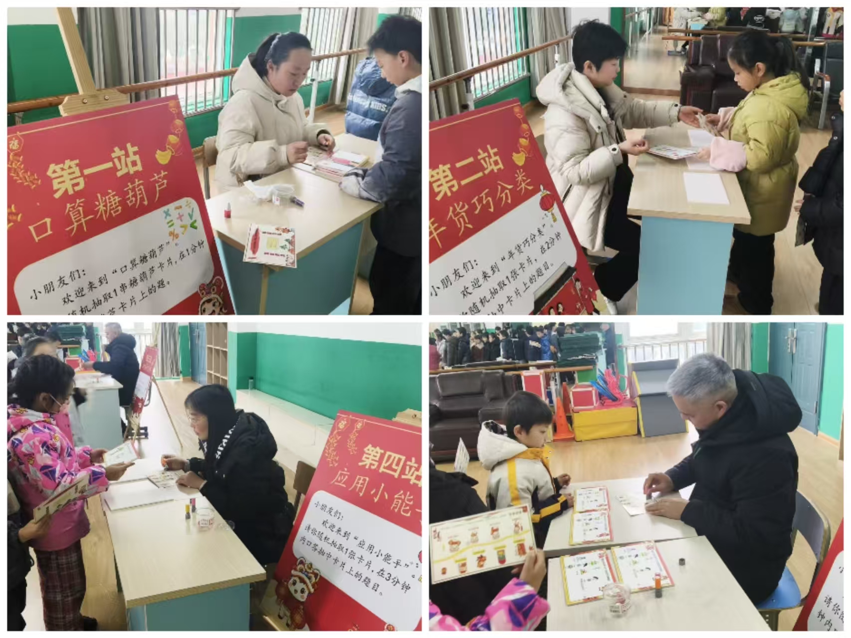 一年级首先以置办新年年货为主线开展了融知识性与趣味性于一体的语文闯关活动,“拼音糖葫芦”“生词对对碰”“诵读迎福气”“说话扫年货”等四道关卡分别考察了学生的拼音、识字、诵读与口语表达能力。数学组的同学们摇身一变成为“口算小骑士”、“图形小侦探”、“拨珠小能手”、“应用小达人”,他们个个神情专注,有的对答如流,有的观察敏锐,有的判断果断,有的手指灵活,有的声音洪亮,有的思维缜密。每一道关卡都有成长的足迹,每一份成果都凝聚着努力与智慧!学生们手持盖满印章的“闯关卡”,脸上洋溢着自信与快乐的笑容。孩子们纷纷表示:“这样的考试就像玩游戏一样,太有意思了!”