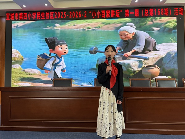 3月20日,民生校区“小小百家讲坛”活动迎来了第一期。本期由四(1)、四(2)两个班组织开展,围绕“少年传承中华传统美德”这个主题,六位小选手带来了精彩的故事,每个小选手都精神饱满,出色发挥,最终,四(2)班艾涵希同学带来的《铁杵成针》获得本次比赛冠军。(图、文/陈义民)