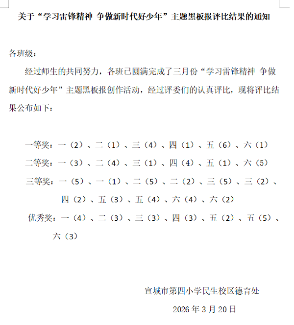 一笔一划绘精神,一言一行传温暖。此次黑板报评比活动,不仅为同学们提供了展现创意与才华的平台,更让雷锋精神在潜移默化中扎根少年心中。(图、文/陈义民)
