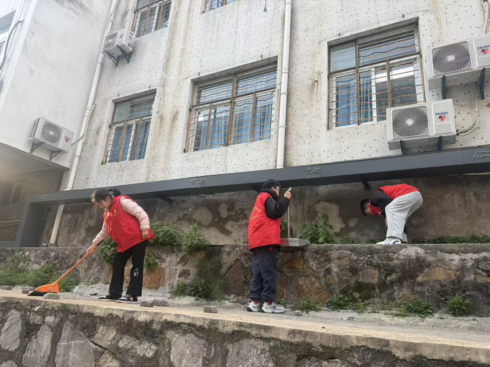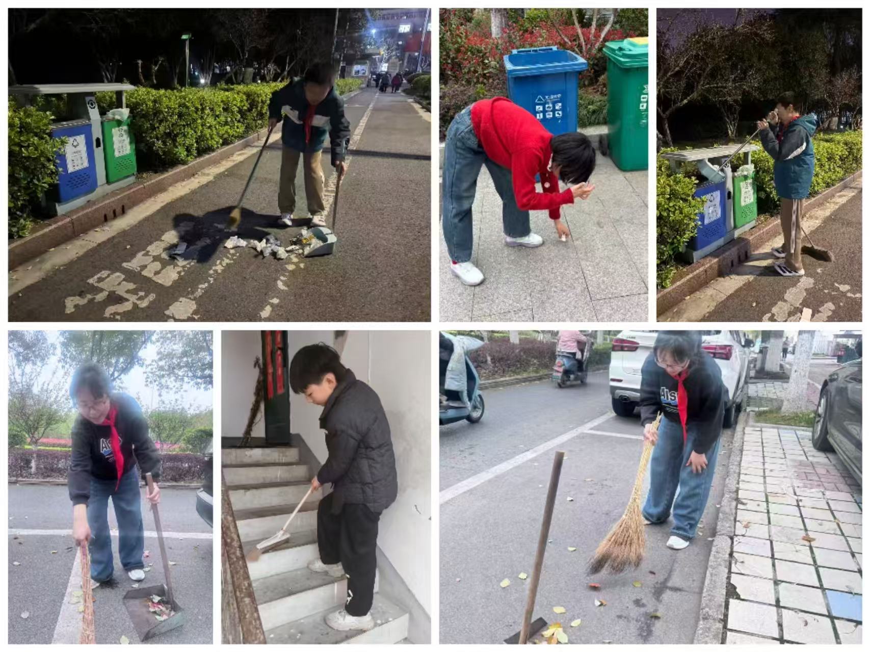 实践是最好的传承。本月,学校组织开展了卫生清扫志愿活动:一方面,学校大队委学生在老师带领下,化身"环保小卫士",携带扫帚、垃圾夹、抹布等工具,对校园操场、走廊、楼梯死角及学校周边社区街道、公共设施进行全面清扫。同学们分工协作、不怕脏累,认真捡拾垃圾、擦拭宣传栏、清理卫生死角,用双手美化校园与社区环境。另一方面,各班学生自发组织志愿小队,主动维护社区卫生环境,用点滴行动践行"雷锋精神人人可学,奉献爱心处处可为"的理念。