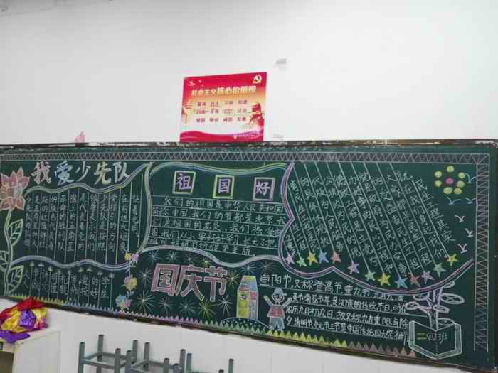 2017年十月份的黑板报主题为“庆“国庆”;少先队知识、重阳节、民生工程宣传”各中队围绕主题认真出好了黑板报,经少先队大队部检查评比 ,各年级评选出优秀黑板报一名。评比结果如下: