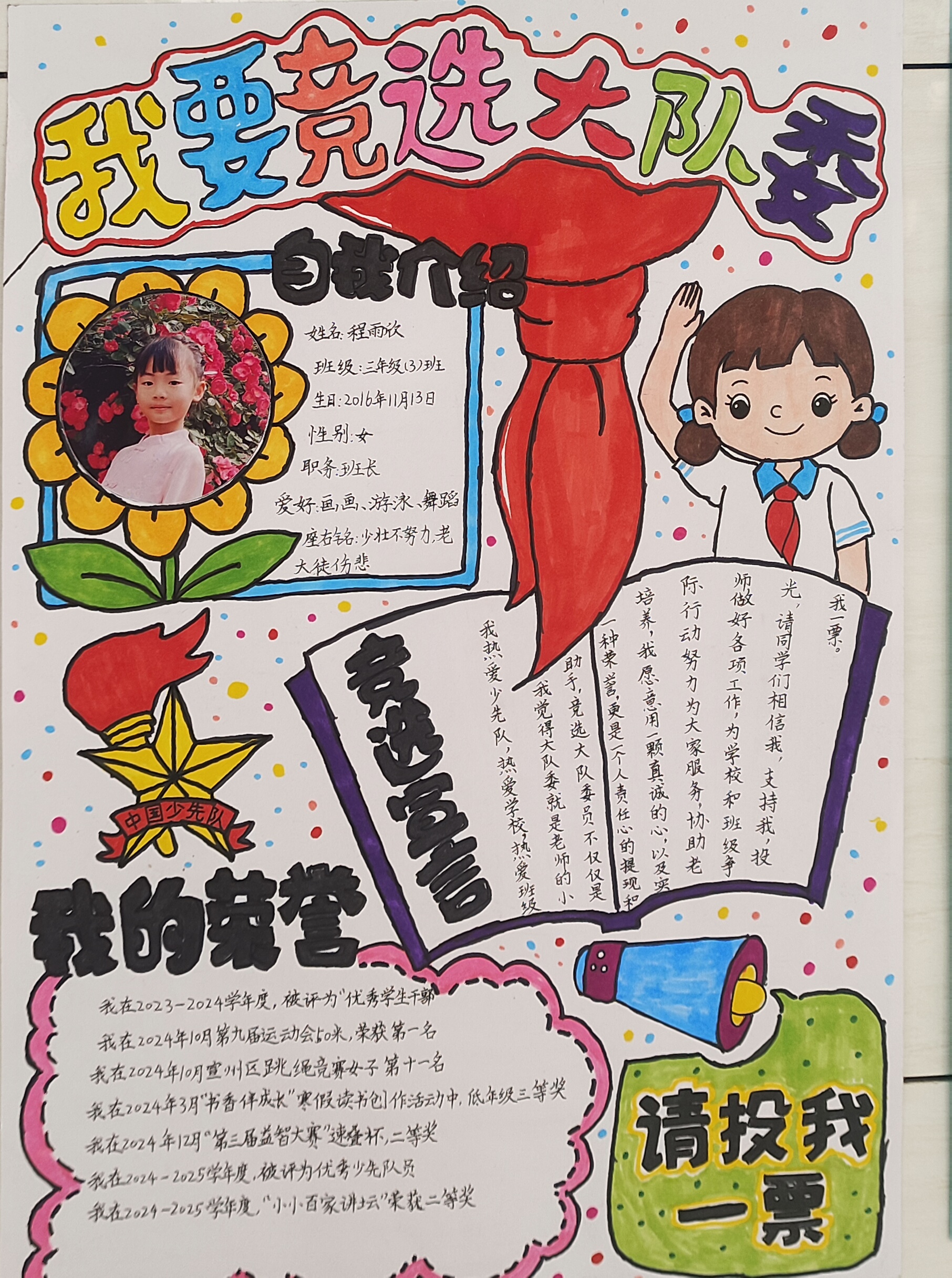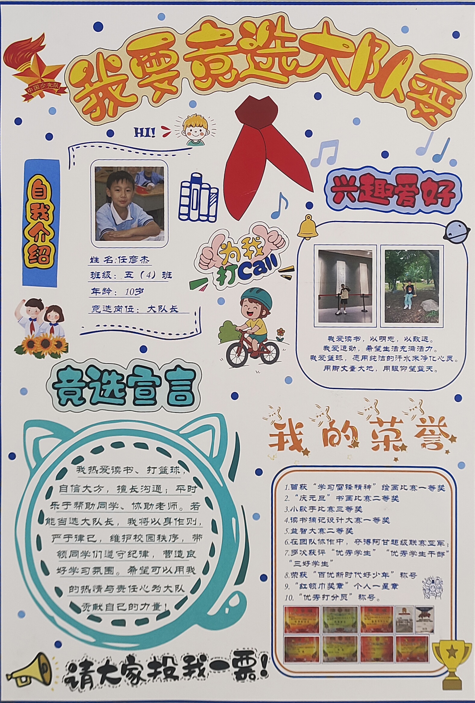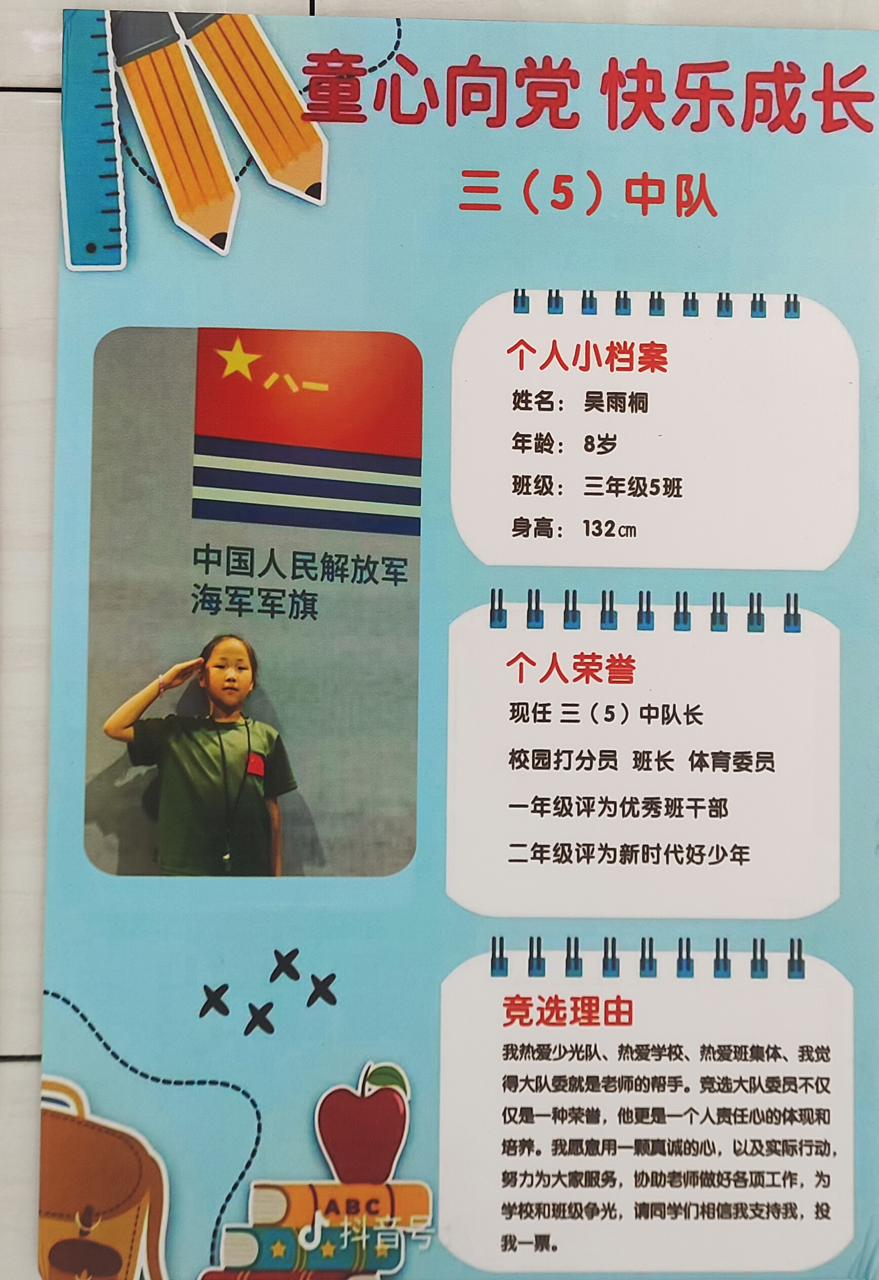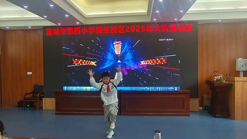 竞选过程中,候选人依次登场,展现出各具特色的风采。在“竞选宣言与才艺展示”环节,小选手们精神抖擞、言辞恳切,有的结合自身担任中队干部的经历,分享组织活动、帮助队员的心得;有的畅谈对大队委岗位的理解,表达“服务少先队员、奉献校园”的坚定决心;还有的用生动的案例讲述自己在学习、品德、社会实践等方面的成长与收获,稚嫩却有力的话语里满是对少先队工作的热爱与期待。