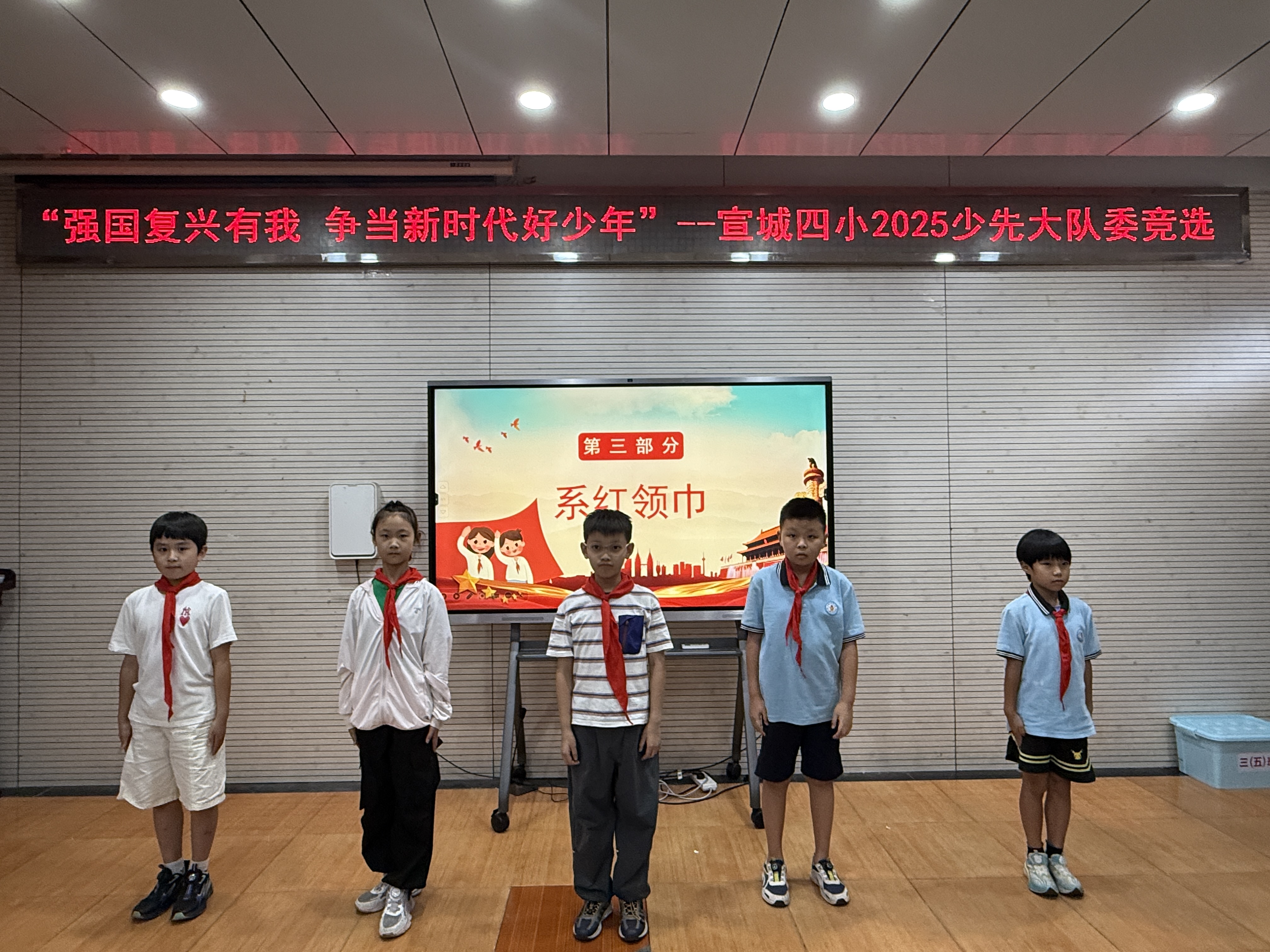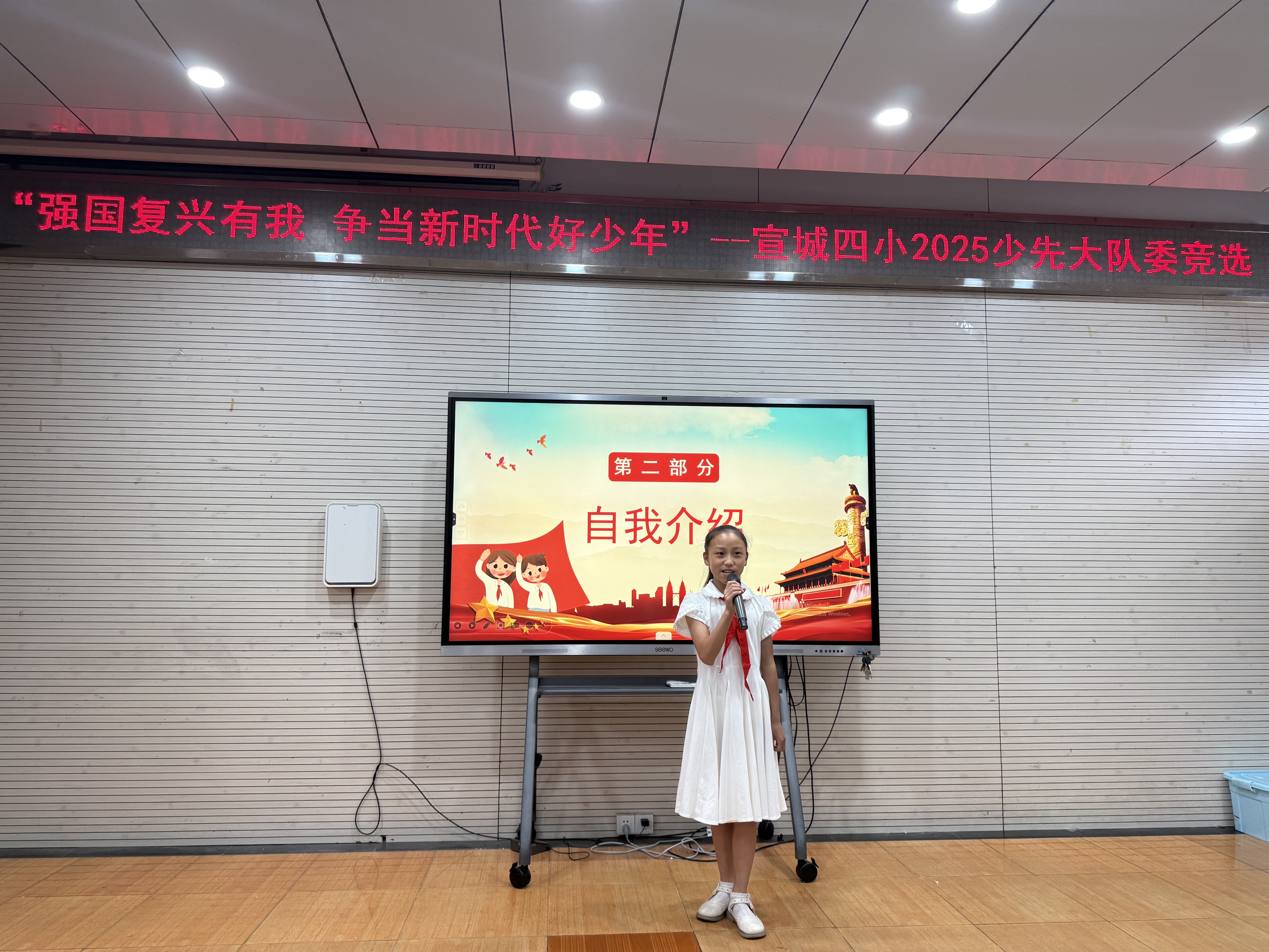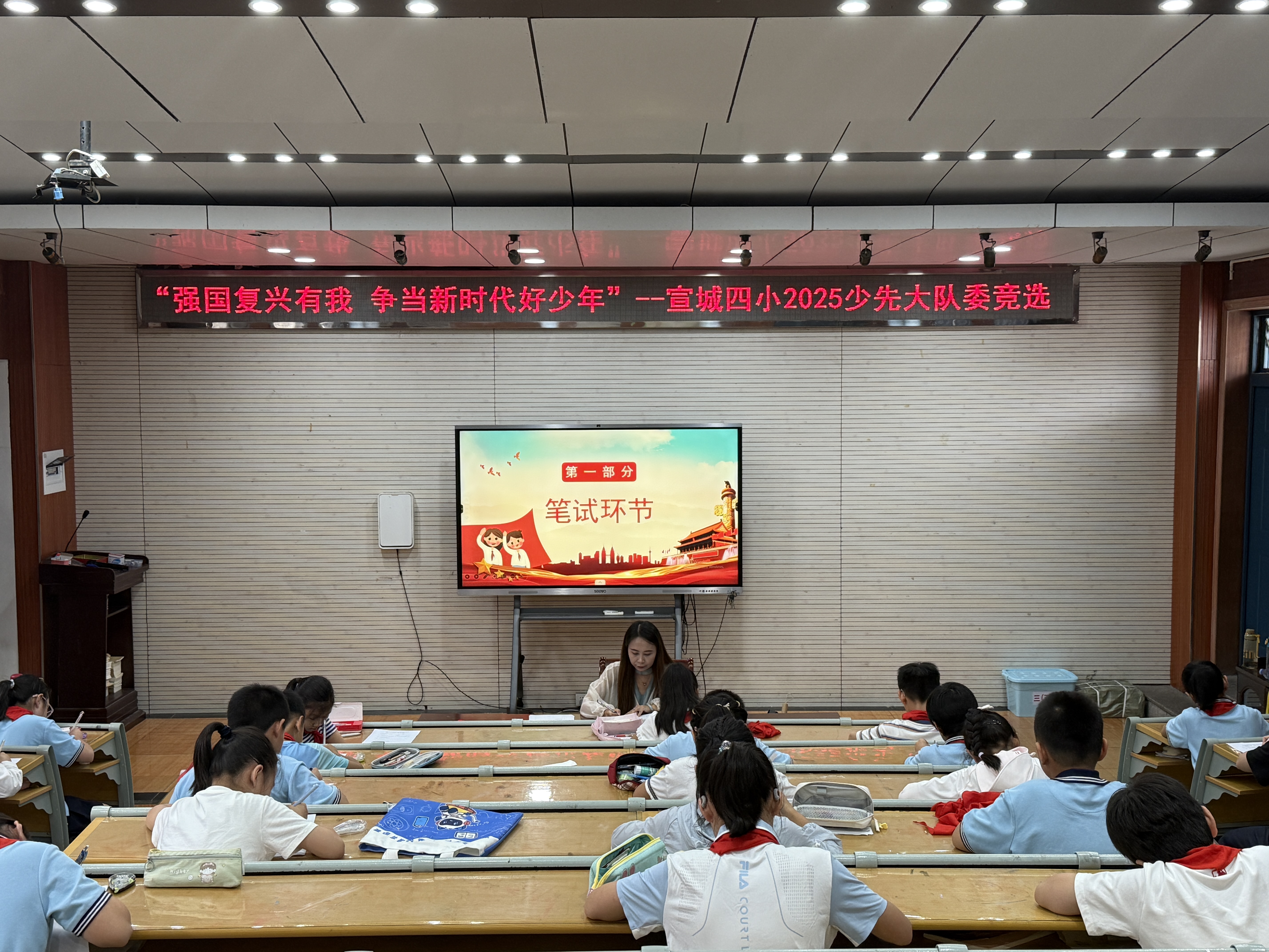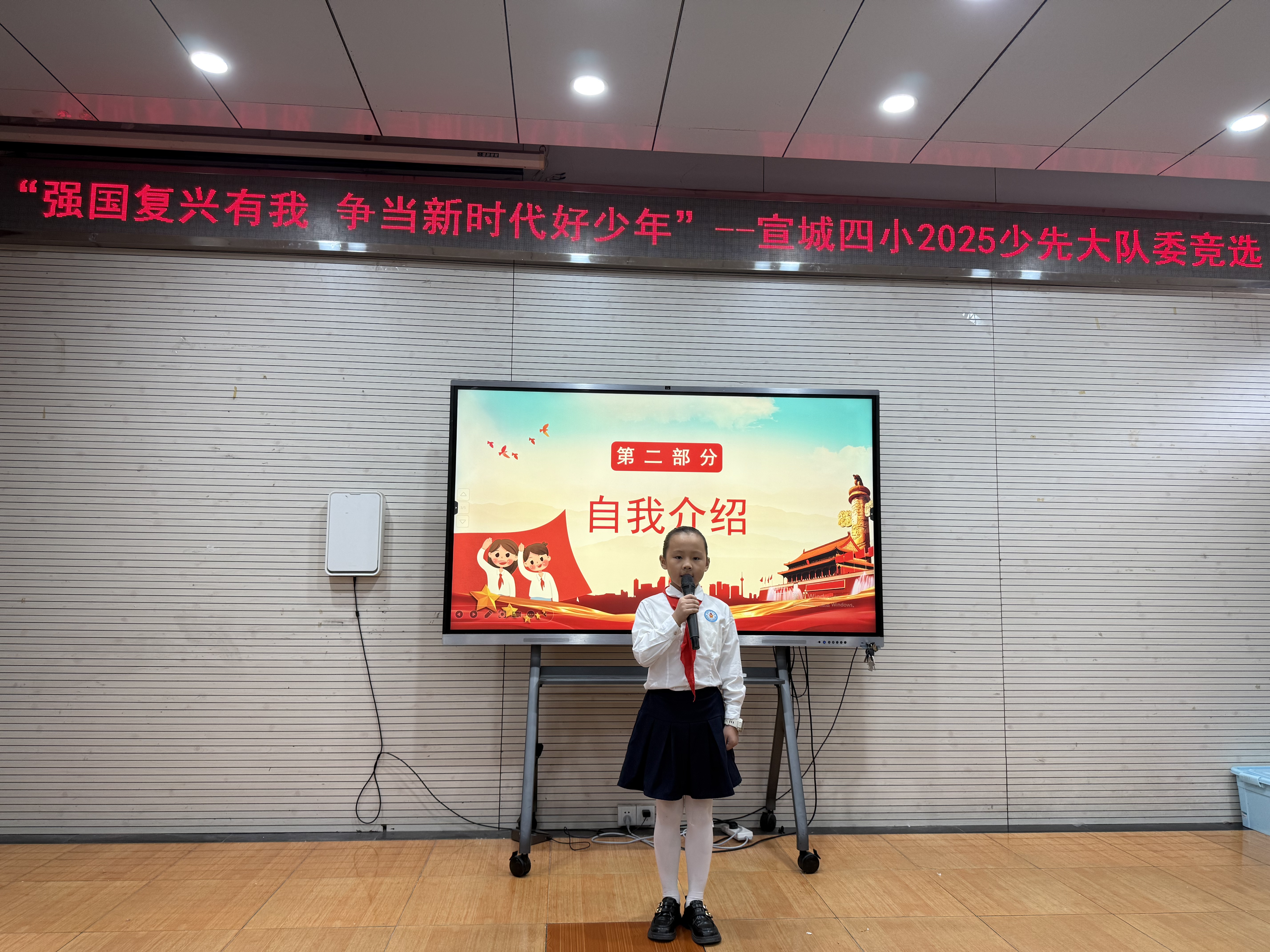 雏鹰展翅,志在蓝天。为了促进学校少先队工作发展,培养队员的组织和管理能力,形成“自己的活动自己搞,自己的阵地自己建,自己的事情自己管”的少先队工作新局面,9月23日下午,“强国复兴有我 争当新时代好少年”宣城四小2025学年少先大队委竞选活动在校阶梯教室隆重举行。经过四年级各中队推优,一批品学兼优、热心服务的少先队员齐聚一堂,展开了激烈的角逐。