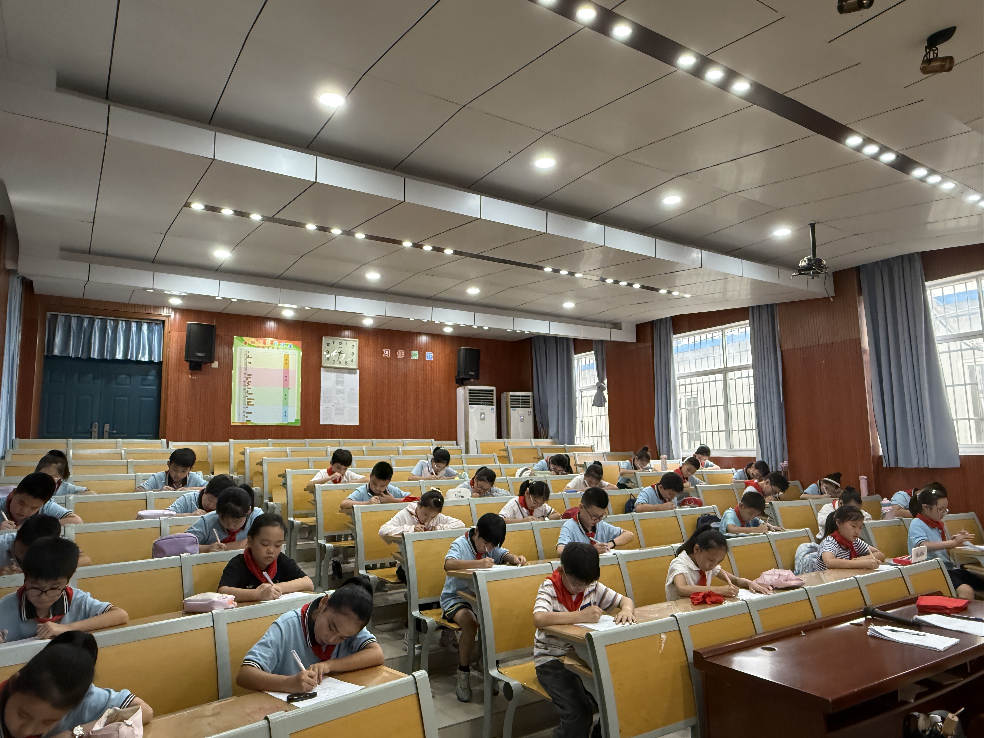 竞选活动在严肃而认真的笔试环节中拉开帷幕。队员们沉着冷静,认真作答。笔试内容涵盖少先队章程、历史、礼仪规范以及时事政治等,重点考察队员们对少先队组织的认识和理解,检验其作为大队委候选人的理论素养和政治觉悟。这一环节为整个竞选奠定了坚实的知识基础。