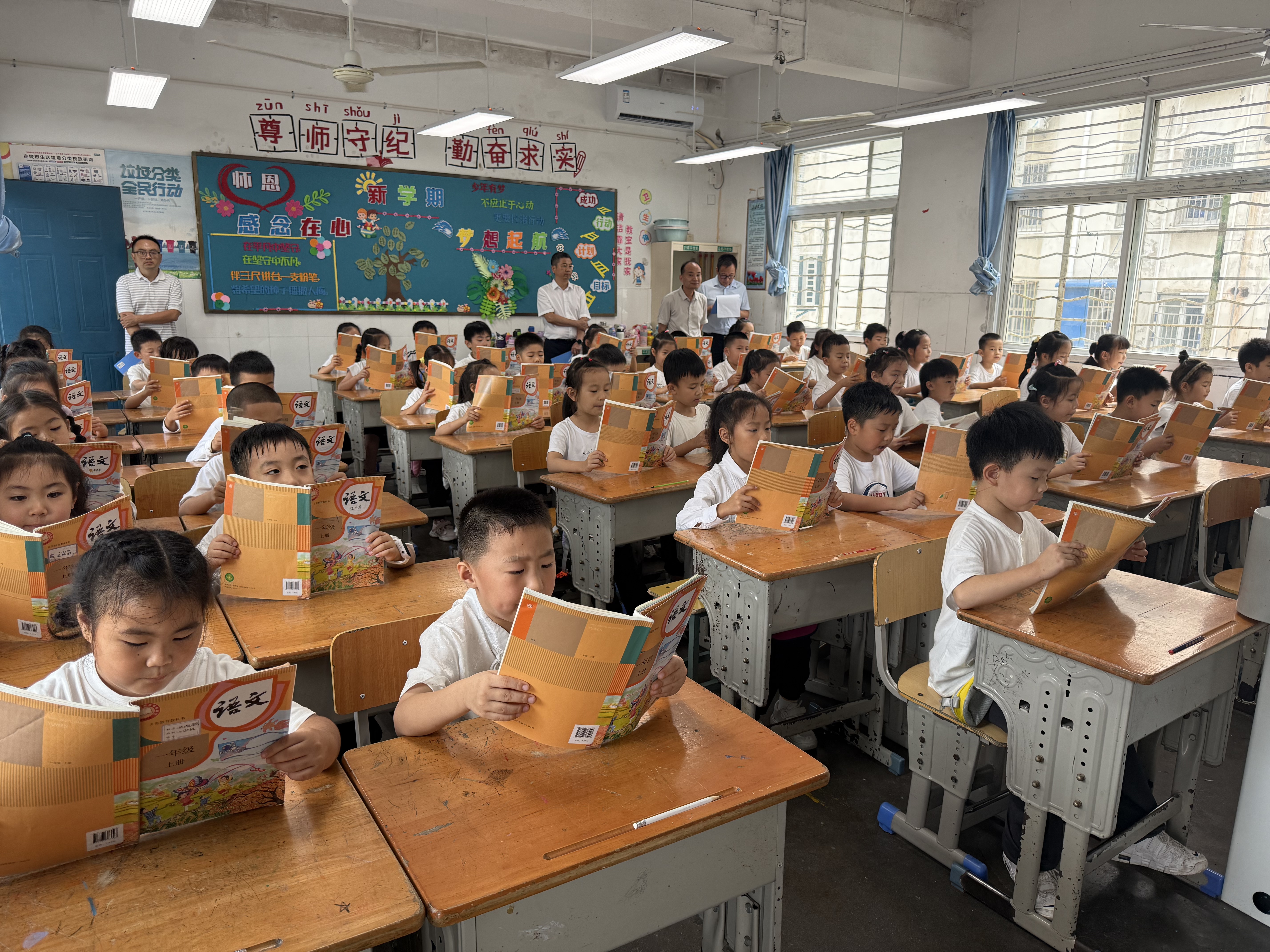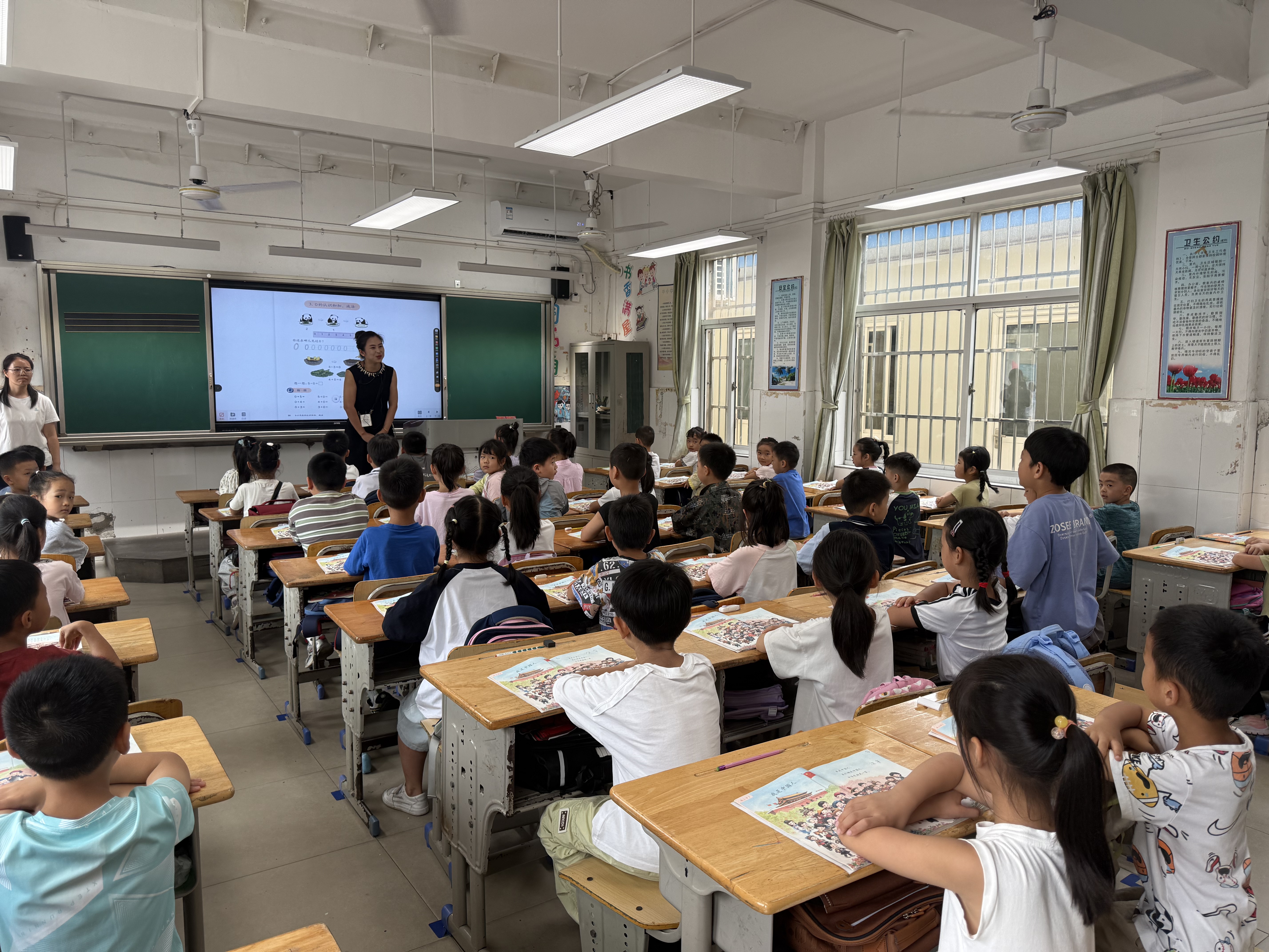 本次评比围绕六大核心维度展开,每一项都紧扣日常学习细节,尽显“小常规”里的“大素养”。在精神面貌考评中,孩子们身着熨帖整齐的校服,腰背挺直如小树苗,眼神专注地望向讲台,举手投足间满是昂扬的朝气;课前准备环节,铃声未落,课本已按科目顺序叠放桌角,文具整齐收进笔袋,桌椅对齐成线,短短几十秒便展现出极强的自理能力;师生问好时刻,“老师,您好!”“同学们,请坐!”的问候声清脆响亮,搭配标准的鞠躬礼,让礼仪的温度在课堂开篇悄然流淌;课堂展示中,学生们严格遵守“举手发言、不随意打断”的规则,小组讨论时轻声交流、有序分工,将课堂纪律化为自然的行为自觉;出操整队环节,各班在口令下迅速集结,队伍横平竖直,广播体操动作舒展有力、整齐划一,尽显团结向上的班级风貌;特色加分项更是成为评比的“高光时刻”,不少班级带来创意展示——有的伴着轻快节奏做起课桌操,小手轻拍桌面、身体跟着律动,既放松身心又展现默契;有的开展“课前古诗诵读”,朗朗书声回荡教室。