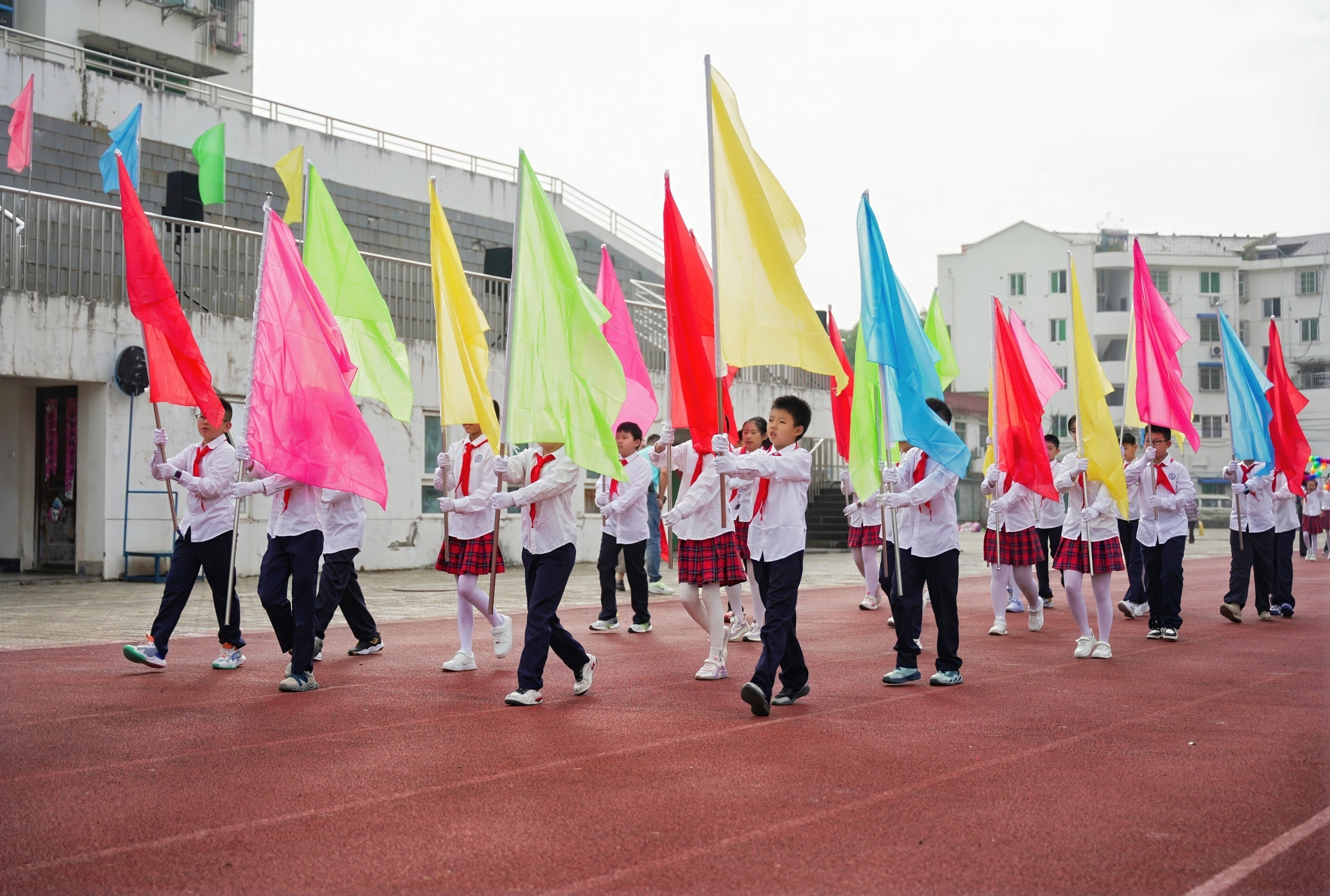开幕式上,阳光洒满运动场,激昂的《运动员进行曲》奏响了拼搏的序曲。各班级组成的方阵身着统一服装,迈着整齐划一的步伐依次入场。有的班级手持彩色气球,寓意着青春的活力与梦想;有的班级挥舞着自制的五星红旗,彰显着浓浓的爱国情怀;还有的班级以武术、啦啦操等特色表演惊艳亮相,赢得了全场阵阵掌声。方阵队员们精神饱满、口号洪亮,每一张稚嫩的脸庞上都洋溢着自信与昂扬的斗志,充分展现了宣城四小学子的蓬勃朝气。升国旗、奏唱国歌仪式后,嵇会书校长发表致辞,他勉励全体运动员要以“更快、更高、更强——更团结”的奥林匹克精神为指引,在赛场上勇于挑战自我、超越自我,同时也要尊重对手、遵守规则,在运动中收获成长与快乐。随后,运动员代表和裁判员代表分别庄严宣誓,承诺将以公平、公正、拼搏的态度投入到此次运动会中。