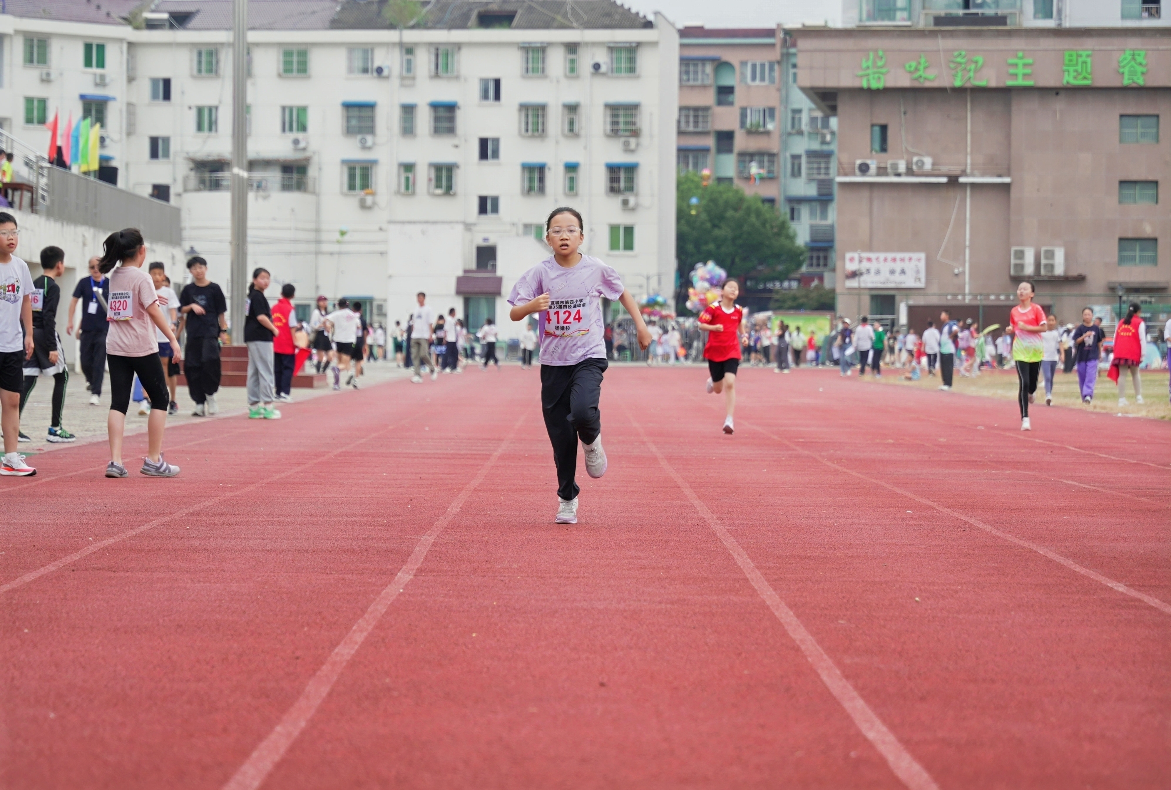 比赛正式开始后,整个运动场瞬间成为激情的海洋。短跑赛道上,发令枪一响,运动健儿们如离弦之箭般冲出起跑线,他们咬紧牙关、奋力冲刺,耳边是呼啸的风声和全场师生的呐喊助威声,每一步都凝聚着力量与坚持;长跑项目中,选手们凭借顽强的耐力与毅力,在漫长的赛道上不断前行,即使汗水浸湿了衣衫,呼吸变得急促,也从未停下脚步,用坚持诠释着体育精神的真谛;跳远沙坑前,运动员们助跑、起跳、腾空、落地,一系列流畅的动作一气呵成,沙粒飞溅的瞬间,定格了他们追求更远目标的坚定身影;跳高赛场上,横杆一次次被升高,选手们一次次助跑起跳,用勇气挑战着新的高度,每一次成功越过,都引来全场欢呼;4×100米接力赛更是将比赛气氛推向高潮,队员们默契配合、快速交接接力棒,传递的不仅是速度,更是班级的团结与凝聚力;跳绳项目中,选手们手腕灵活转动,绳子在空中划出优美的弧线,清脆的落地声与加油声交织在一起,充满了欢乐与活力。