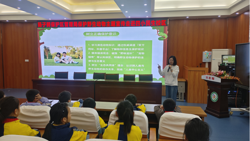 10月30日下午,扬子鳄保护区管理局宣教管的工作人员们走进四小民生校区,开展了野生动物保护主题宣传活动。