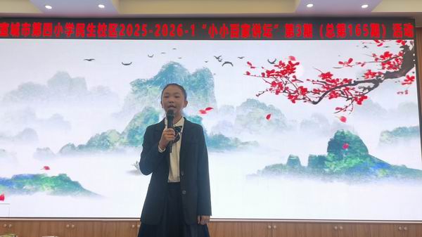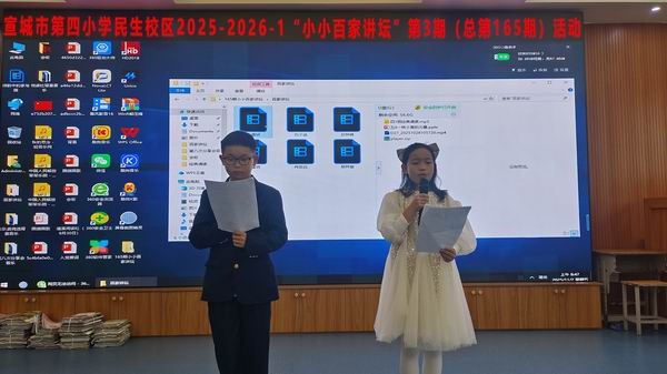 11月7日上午,四小民生校区开展了第三期“小小百家讲坛”活动。本期活动由五(5)和五(6)班组织开展。围绕“中华传统美德”这个主题,六位参赛选手带来了精彩的演说,每个小选手都精神饱满,出色发挥,最后,五(6)班刘子涵同学带来的《一粒谷子》获得本次比赛冠军。
