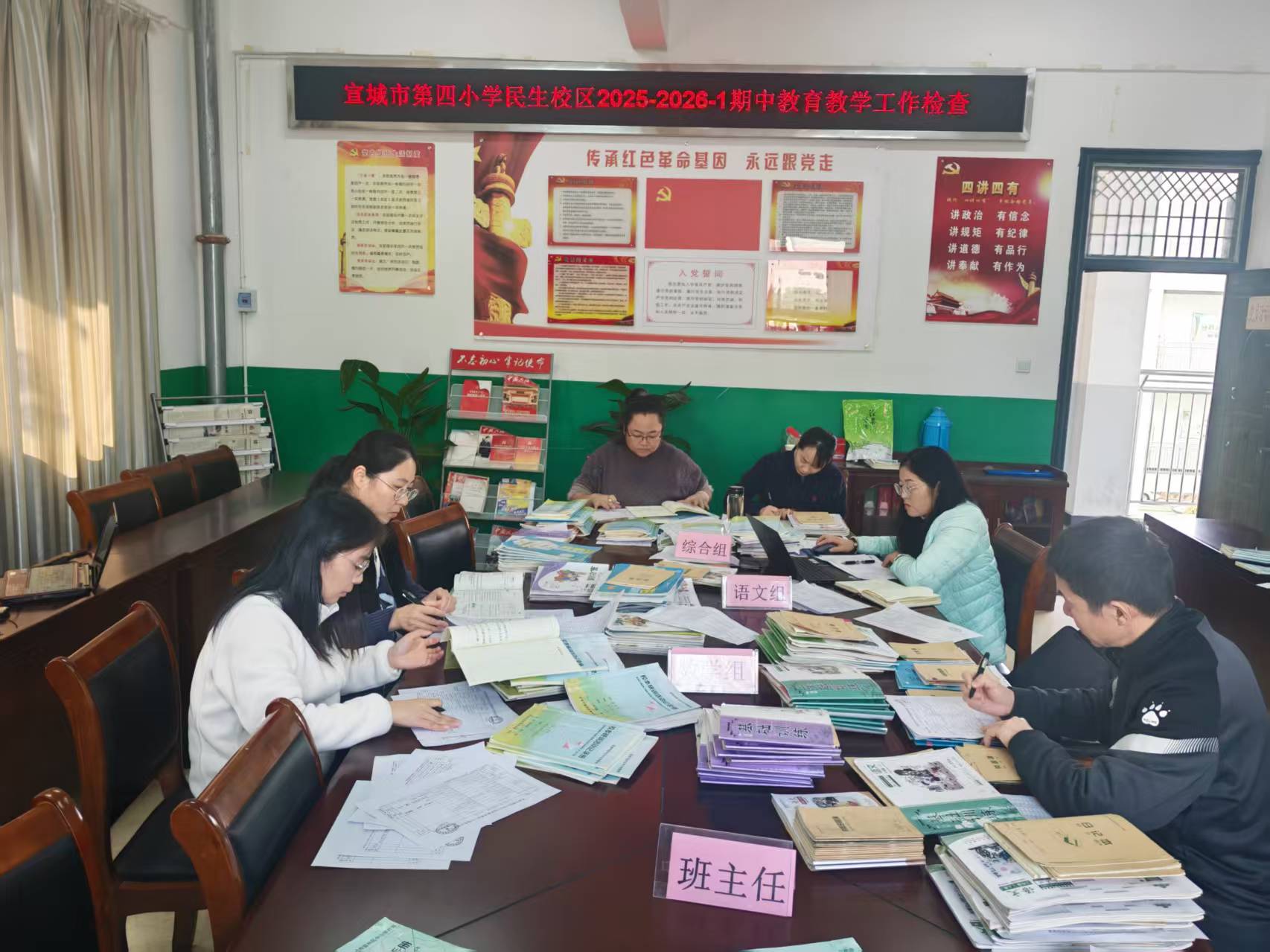 为全面掌握开学以来教育教学工作的开展情况,及时发现并解决教学中存在的问题,进一步规范教学行为、提升教学质量,11月14日学校教导处、德育处联合组织教研组长 、教师代表开展了期中教育教学常规检查工作。