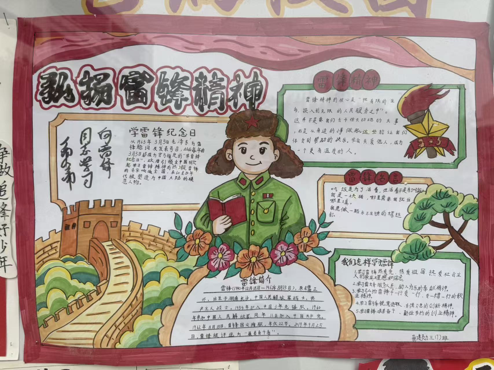 校园里,"学雷锋"主题黑板报与手抄报评比活动精彩纷呈。各班同学齐心协力,用五彩画笔、工整文字精心创作,黑板报主题鲜明、版面精美,内容涵盖雷锋事迹、精神解读、校园好人好事等;手抄报形式多样、创意十足,同学们以画传情、以文抒志,一笔一画展现对雷锋精神的理解与敬仰。经学校评审,多幅优秀作品脱颖而出,既展示了学生的艺术才华,更让雷锋精神在潜移默化中扎根心田。